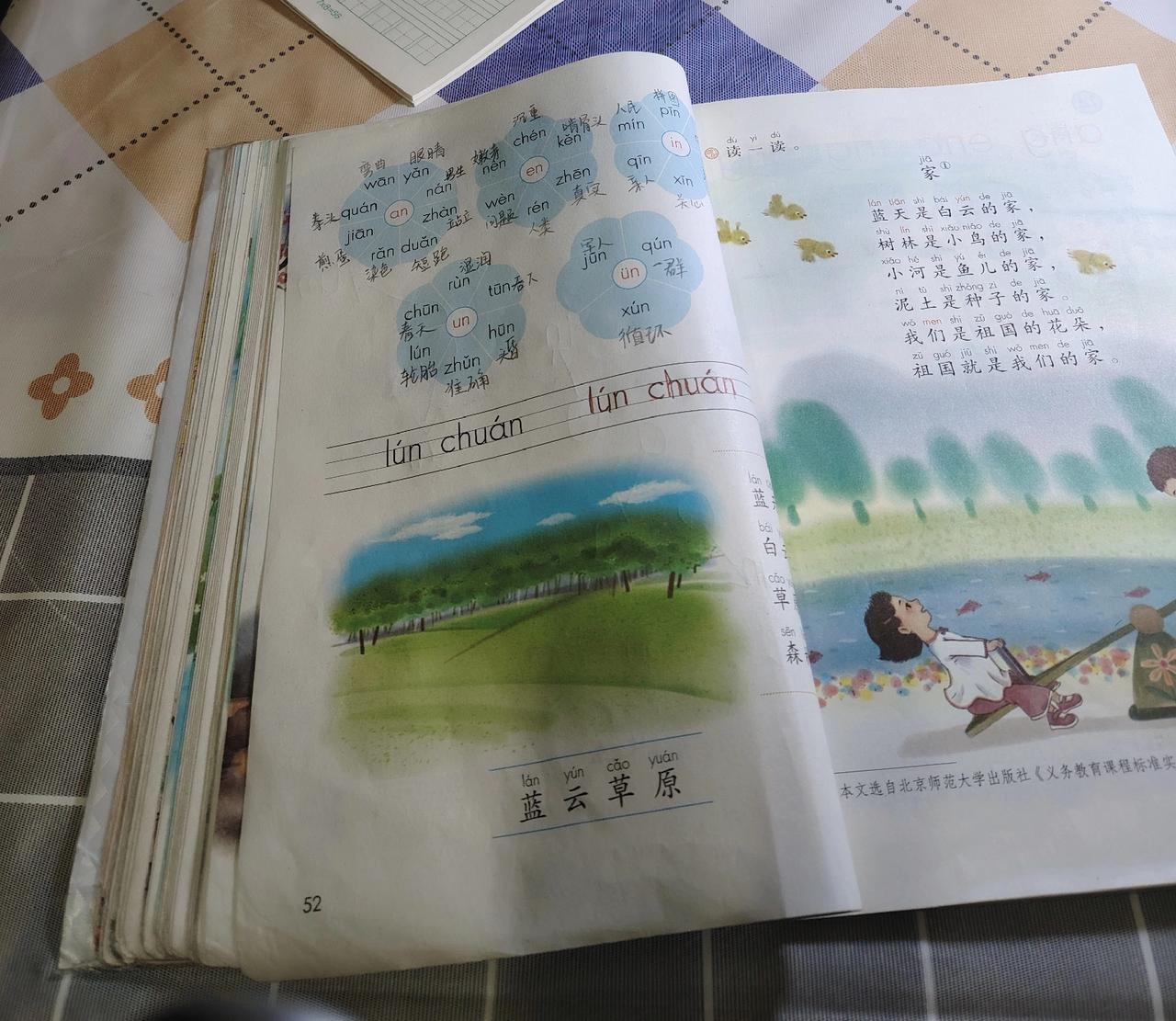 幼儿园时不允许提前教授拼音。 但是,谁能想到! 一年级的节奏这么快——一天就学了五个韵母(an、en、in、un、ün)和三个整体认读音节(yuan、yin、yun)。 老师要求课本上相关音节回家后必须反复朗读,直到熟练掌握才行。