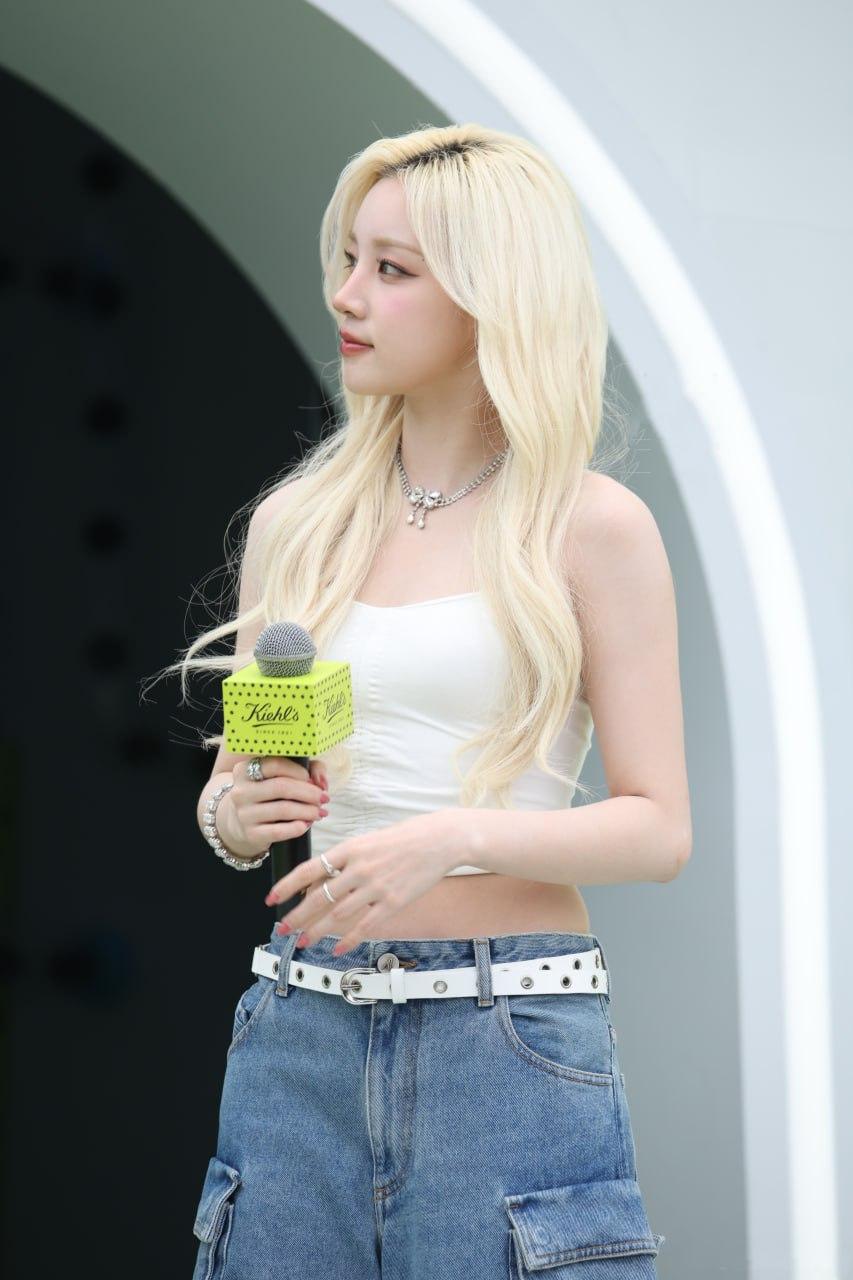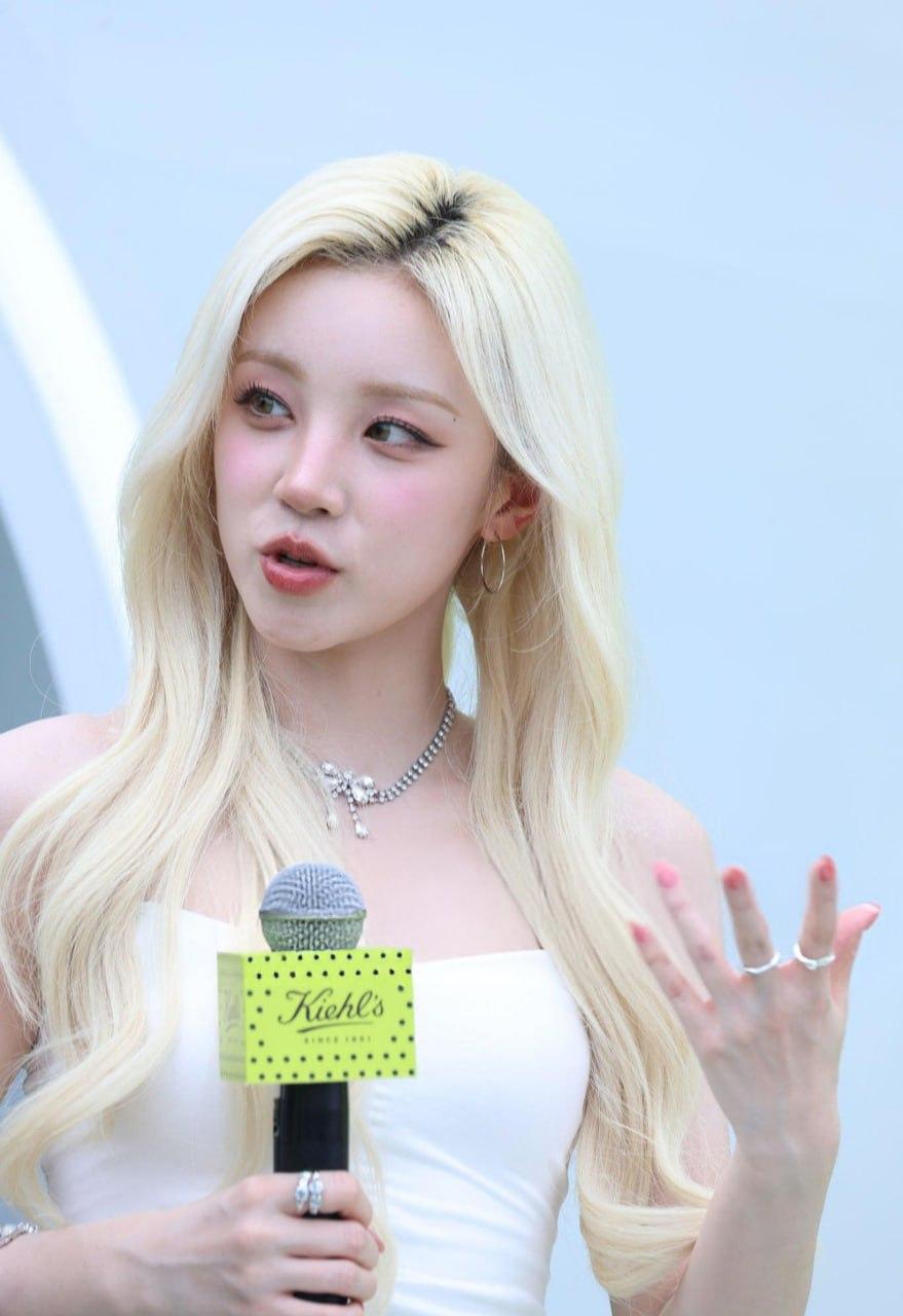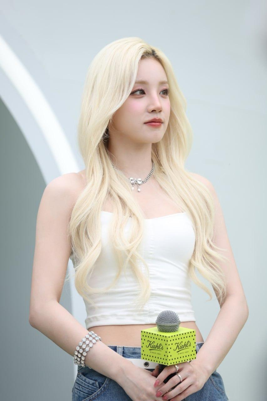 金色卷发搭配辣妹风吊带造型 亮相护肤品牌活动现场生图美女 混血发色 高颜值 金发女孩