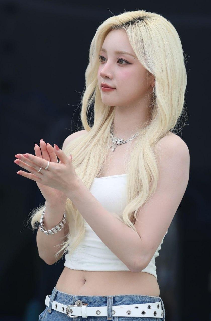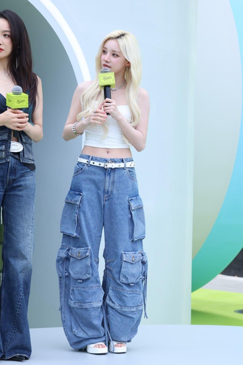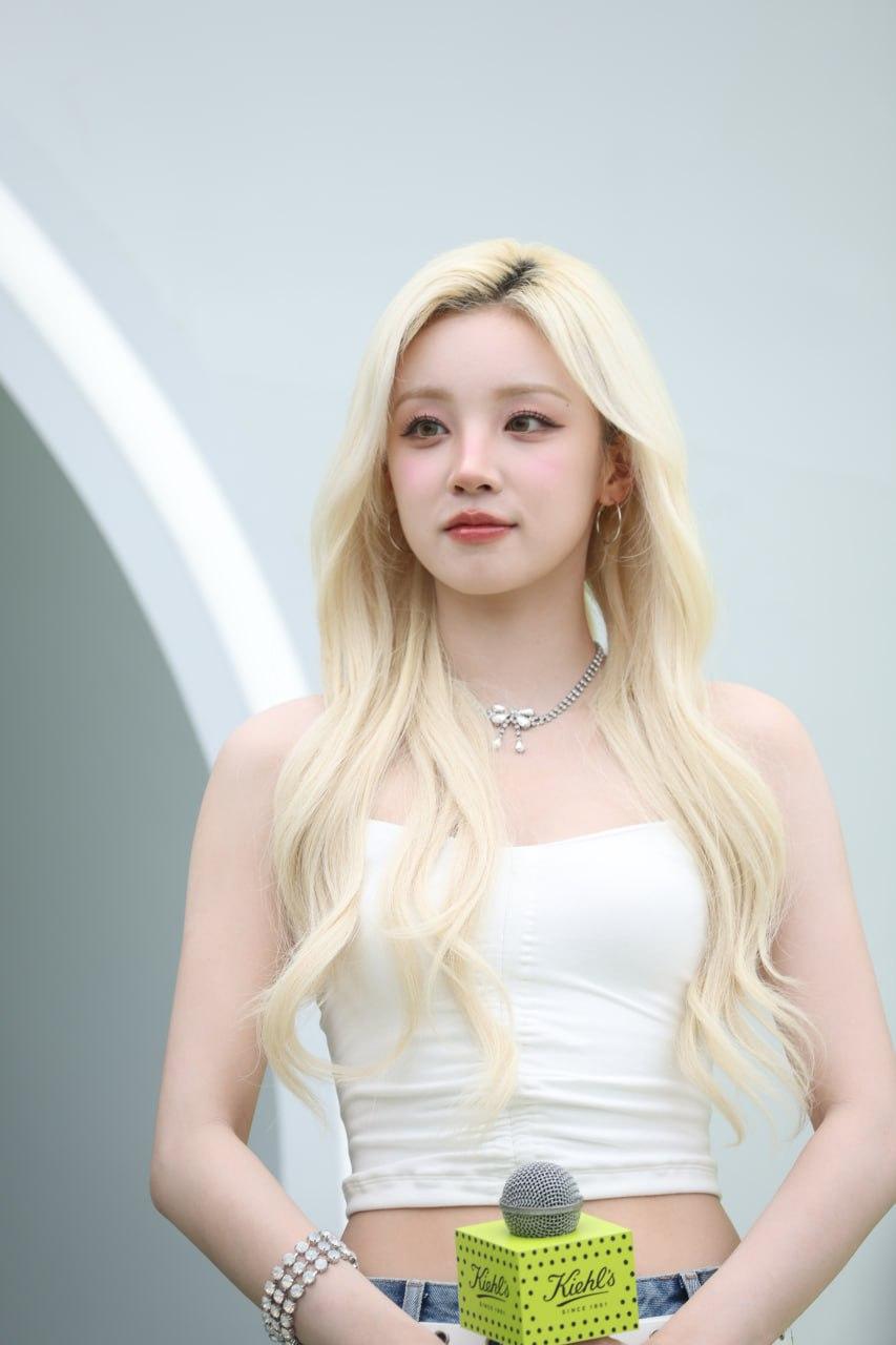 金色卷发搭配辣妹风吊带造型 亮相护肤品牌活动现场生图美女 混血发色 高颜值 金发女孩