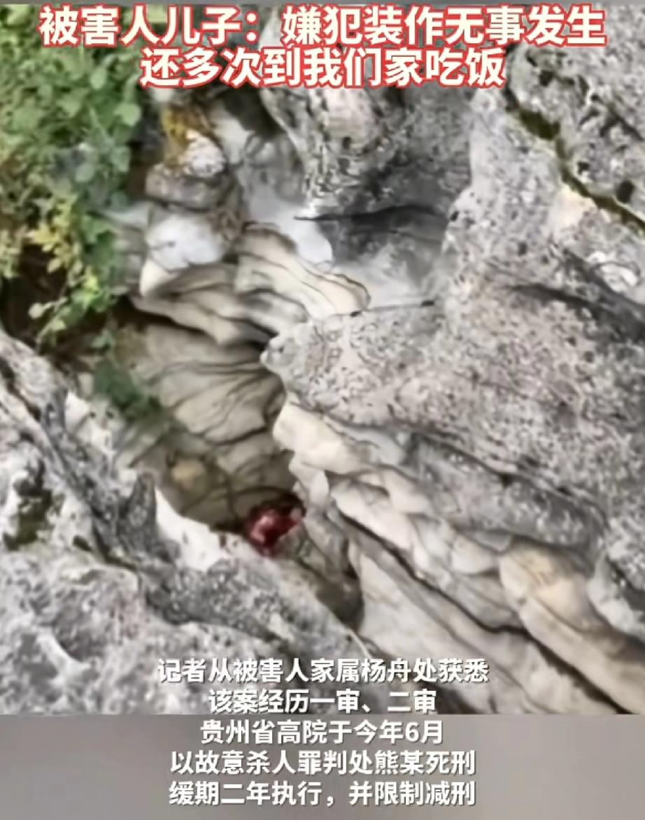 贵州男子给49岁农妇打60次电话,因为对方拒接,男子找她对峙,还猥亵她,她奋力抵抗,男子一怒之下将她残忍杀害,作案过程令人发指! 事后男子熊某把农妇王秀珍的衣服全部脱光,然后将她藏在石缝里,还用135斤大石头压住。令人感到恐怖的是,熊某做完这些事后非常淡定,跟没事人一样。 王秀珍的家属见王秀珍迟迟未归家,便报了警,此时熊某还特别很热心地组织村民成立搜寻队伍,家属也很热情招待熊某,多次邀请他来家中吃饭,感谢他的出手相助。 不过众人搜寻了一个月都没能找到半点蛛丝。此时熊某心中的大石也放下来了,以为自己可以逃过一劫。 可是天网恢恢疏而不漏,最后王秀珍家属找了一个道士,经过道士指认藏尸方位,在加上警方的深入侦查,熊某吓得脸都青了,最后承认自己所犯下的罪行。 熊某的行为确实令人发指,不过这起事件也让人有两处值得思考的地方。 第一,仅仅凭借熊某一个人的力量是否真的能抬得动一百多斤的巨石? 第二,熊某与王秀珍是什么关系,王秀珍是有夫之妇,作为同村人本该互相互相,结果熊某还如此骚扰别人,行为真是非常恶劣。 当然,等待熊某的是死刑,缓两年执行。但家属申请立马执行死刑,希望能如愿! 关注@柴一言堂 ,看尽世间事 【来源:观威海】