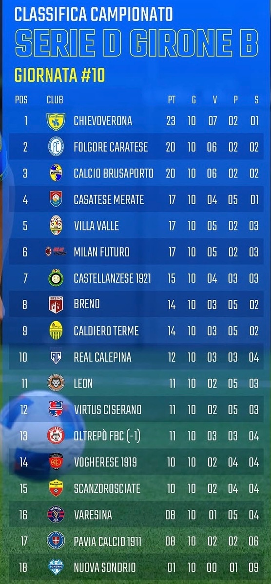 【意丁联赛B组积分榜】 意丁联赛 2025-26赛季意丁联赛第十轮积分榜: