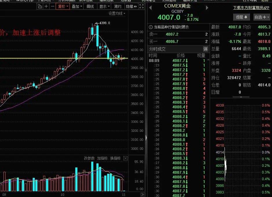 外国想涨价就涨如今成功国产黄金4000美元/盎司震荡,周线一波9连阳大涨之后,2连阴调整,4000美元/盎司是关键位置,类似股市的3000点,4000点整数关口。