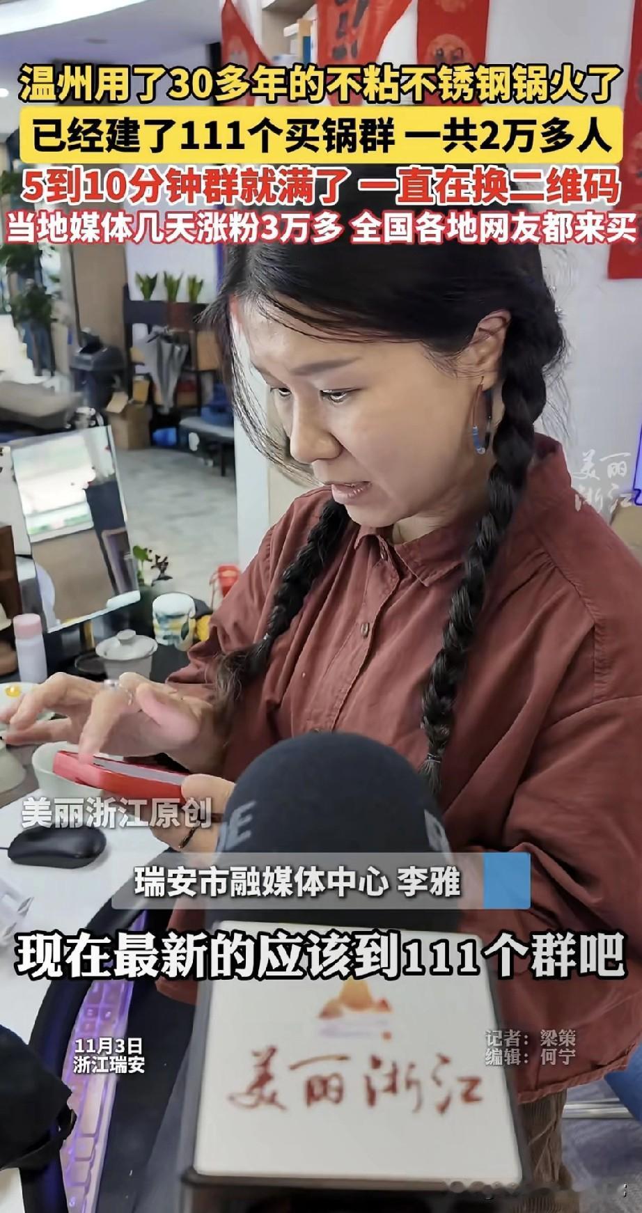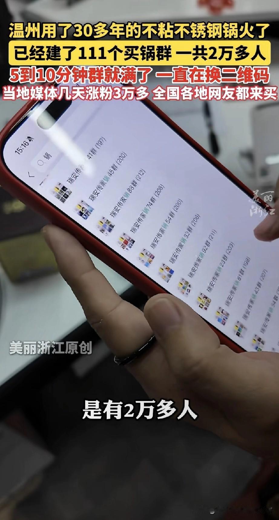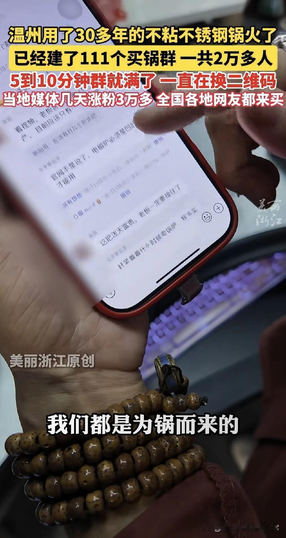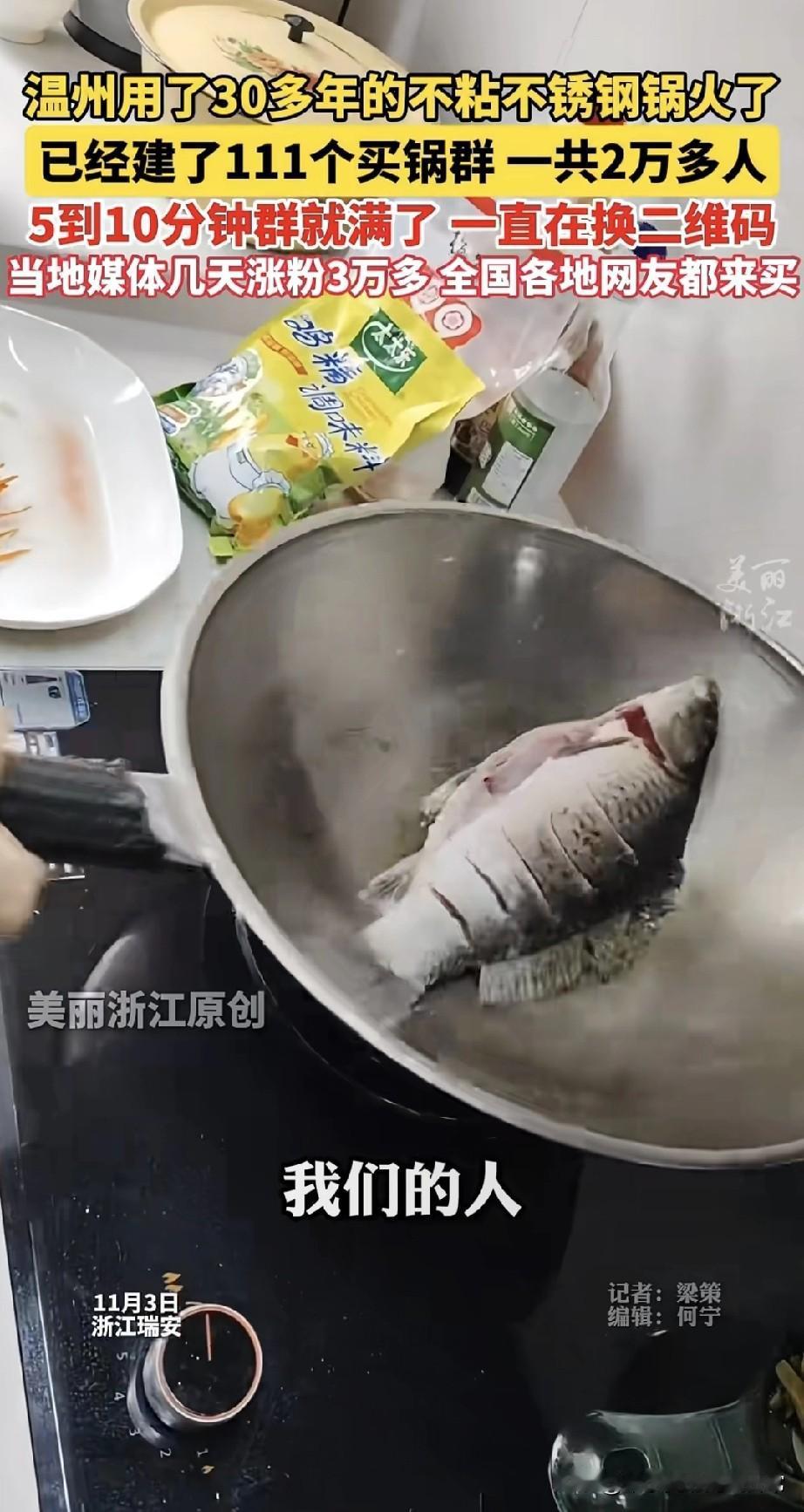 神锅火到离谱!30年不粘不锈钢锅建111个群,2万人疯抢 温州有口用了30多年的不锈钢锅彻底炸了!建了111个买锅群,2万多人挤破头要入群,5-10分钟群就满到换二维码。当地媒体几天涨粉3万多,全国网友疯了似的来抢。 你敢信?煎鱼不粘、用 decades 还跟新的一样,这锅简直是厨房神器天花板!网友们甚至开玩笑说要摇号买锅,这阵仗比抢限量款还疯狂。 但话说回来,一口锅而已,至于这么疯吗?是真·神仙锅还是营销套路?你们觉得这锅值得这么抢吗?