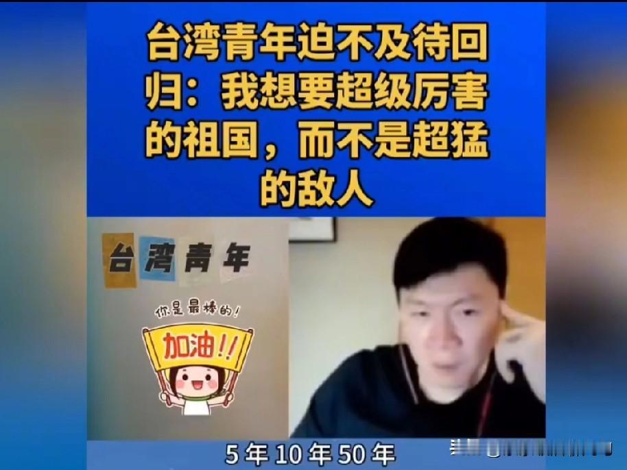 云林小伙的统一心声,听着真提气! 台湾云林有个二十出头的小伙子,上节目聊对统一的期待,一席话把所有人都讲感动了。 他说自己实在想不通,台湾回归能有啥坏处?回归后不用再陷在政治内耗里,一门心思搞经济多好!他甚至盼着,说不定哪天一觉醒来,就已经回到祖国怀抱——到时候台湾有最强大的军队当后盾,再也不用怕任何风浪。 在他眼里,台湾人面前就两条路:“台独”是明摆着的死路,统一才是实打实的光明大道,他敢打包票,统一后最多五年,台湾经济肯定能焕然一新。 更让人佩服的是,他直言更支持“一国一制”。因为这样能“重新洗牌”,打破台湾现在固化的阶层,让像他一样的年轻人,能有更多往上闯的机会。 说起政党,他也看得清楚:民进党就别指望了,让他们支持统一根本不可能;国民党同样靠不住,自从1927年“清党”后,早就没了灵魂,如今全是为了利益打转。 二十几岁能把两岸形势、世界局势看得这么透,还敢说真话、有担当,这小伙子是真有眼光,妥妥的人才!