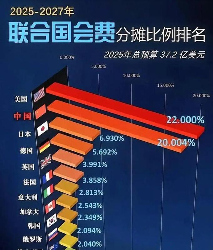 中国刚给联合国交完2025年会费,50多亿,肉疼,没想到这么多!10月初联合国又来跟中国要钱了,否则联合国只能裁员!10月底我们就全额打款6亿8573万美元,折合人民币50多亿。 按照《联合国宪章》的规矩,会费多少是按“支付能力”来定的,得看一个国家的经济总量、人均收入这些硬指标,每三年还会根据各国经济变化重新调一次比例。现在中国的分摊比额是20%,在所有会员国里排第二,仅次于美国的22%,比排第三的日本高出一大截,人家日本才摊6.93%,这么一比就知道为啥咱们的缴费金额会这么显眼了。 联合国10月初上门要钱也实在是没办法,那会儿它的财政状况已经紧张到快撑不住了。秘书长古特雷斯早就放话出来,要是会员国再不交钱,联合国就得面临“破产危机”,不光今年顶不住,2026年、2027 年都得受影响,裁员根本不是吓唬人。 要说联合国缺钱,罪魁祸首其实是美国这个“头号老赖”。截至 2025 年9月底,美国拖欠的会费已经超过 30 亿美元,其中光 2025 年的常规预算摊款就有 8.26 亿美元,剩下的全是往年积下的旧账和该交的维和经费。 可你说美国没钱吗?它 2025 年的军费都快冲到 9000 亿美元了,欠联合国的这点钱连军费零头都不够,说白了就是不想尽义务,一门心思搞“美国优先”,合自己心意的规则就用,不合心意就耍赖拖欠,连联合国都得跟着受委屈。 在这种节骨眼上中国全额打款,其实是在守规矩,也是没办法的事。毕竟联合国是搞多边主义的核心平台,咱们作为安理会五常之一,总不能跟着耍无赖。 而且中国一直是这么做的,2021年就足额缴清过当年的会费和维和摊款,这次不过是延续了一贯的态度。外交部长王毅也说过,现在世界上不少问题,就是因为联合国宪章的规矩没被好好执行,咱们按时交钱也是在维护这个平台的权威。 更关键的是,这笔钱确实能解联合国的燃眉之急。联合国秘书长副发言人哈克特意在记者会上用中文说“谢谢”,就是因为这会儿每笔足额缴款都太关键了。 可能有人觉得肉疼,但联合国的常规预算要养着近两百个机构的日常运转,小到会议组织,大到国际争端调解都得花钱;维和经费更是直接关系到全球热点地区的稳定,那些蓝盔部队没经费连装备都维护不了。 中国在联合国的很多主张,比如全球发展倡议、气候合作,都得靠这个平台推进,要是联合国真因为没钱裁员停摆,咱们想做的很多事也没法落地。再说了,跟美国那种欠着 30 亿还喊着“砍预算”的做法比,咱们按时交钱换的是国际社会的信任,这可不是 50 多亿能简单衡量的。
