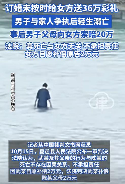 “又是彩礼惹的祸?!”河南夏邑,男子给了一女子10万元余元彩礼后,与对方订婚,而后因与对方发生矛盾,与对方解除婚约。随后,男子还想要与对方在一起,并同意对方将彩礼增加到36万。结果,再次与对方订婚当日,男子因父母未给对方送彩礼,与父母发生争执而后离家轻生。事后,男子父母难以释怀,认为女子及其家人索要高额彩礼等行为与男子的死亡之间不无关系,将女子及其家人告上法庭,索要20万元赔偿。但是法院这样判! “36万,少一分这婚就别订了!”2025年2月3日,一个本该是双喜临门的日子。院子里摆着待客的糖果,门上褪色的喜字上面,还贴着新的喜字。陈某穿着崭新的西装,却在出门前与父母爆发了最激烈的争吵。 “钱呢?说好的今天送过去的36万呢?”他几乎是吼出来的这句话。母亲一脸不情愿地劝道:“儿子,咱们家哪还有36万?上次的10万才要回来几个月……” “我答应过他们的!你们让我怎么做人?”陈某摔门而出,留下老两口相顾无言。谁都没想到,这一别,竟是永远。 时间倒回一年前,陈某和武某通过相亲认识,在农村,很多人都追求早婚,所以,他们俩的初次订婚还算顺利,10万元“压手礼”,加上沉甸甸的“三金”,换来了双方家庭的祝福。 可感情从来不是明码标价的买卖,订婚后,两人因性格不合常闹矛盾,最终解除了婚约。按照规矩,武某家退还了全部彩礼。 照理说,故事该到此为止。但感情的世界里,理智常常缺席。分开后的陈某发现自己仍放不下武某,经过一番挣扎,他主动求复合。武某家提出了新条件:要重新订婚可以,彩礼得涨到36万。 在农村,一个普通家庭,刨去开支,一年能攒下两三万元已经很不错。36万,相当于十几年的积蓄。但陈某几乎是不假思索地答应了,也许在他心里,只要能换回失去的爱情,任何代价都值得。 2月3日,武某发来微信:“彩礼准备好了吗?我爸妈说了,今天见不到钱,这事就算了。”陈某回复得很快:“放心,我说到做到。”他确实想做到,但父母却不答应。 “你们是不是想逼死我?”晚饭时分,陈某对着父母吼出这句话时,眼睛是血红的。父亲坐在那里,推说不是他们不帮,是实在借不到了啊……一番争吵过后,陈某冲出了家门。 晚上九点,从微信聊天中察觉到不对劲的武某开始拨打陈某的电话,却无人接听。她先是联系陈某的母亲:“阿姨,他好像有点不对劲,你们快找找他……”接着就在微信上劝陈某,千万不要想不开,可惜,一切都太迟了。 当第二天陈某的遗体从河里被捞起时,老两口的哭喊着指责武某:“都是她逼的,要不是她们家非要36万,我儿子怎么会走这条路……”他们直接将武某及其父亲告上法庭,索赔20万元。 但法院审理后发现,陈家不是没钱,而是因为武父要求把陈某弟弟的烟酒店交由陈某与武某经营,陈家不愿意,这才取消了银行的预约取款申请,导致彩礼无法按时送给武某。而在陈某表露轻生念头后,武某确实进行了安抚,并第一时间通知了他的家人。 所以,法院最终判决:武某不承担赔偿责任,但考虑到陈某已经身亡,武某自愿补偿2万元。 在这起悲剧里,或许没有绝对的恶人。武某家坚持彩礼,是因为这就是谈好的;陈某父母不愿支付,或许只是不想被未来亲家拿捏;陈某自己,则被困在“承诺”与“现实”的两难之间。只可惜,谁都不愿意先退一步。 信源: 半岛晨报——2025-11-02 订婚未按时给女方送36万彩礼,男子与家人争执后轻生溺亡 文|一阳 编辑|史叔