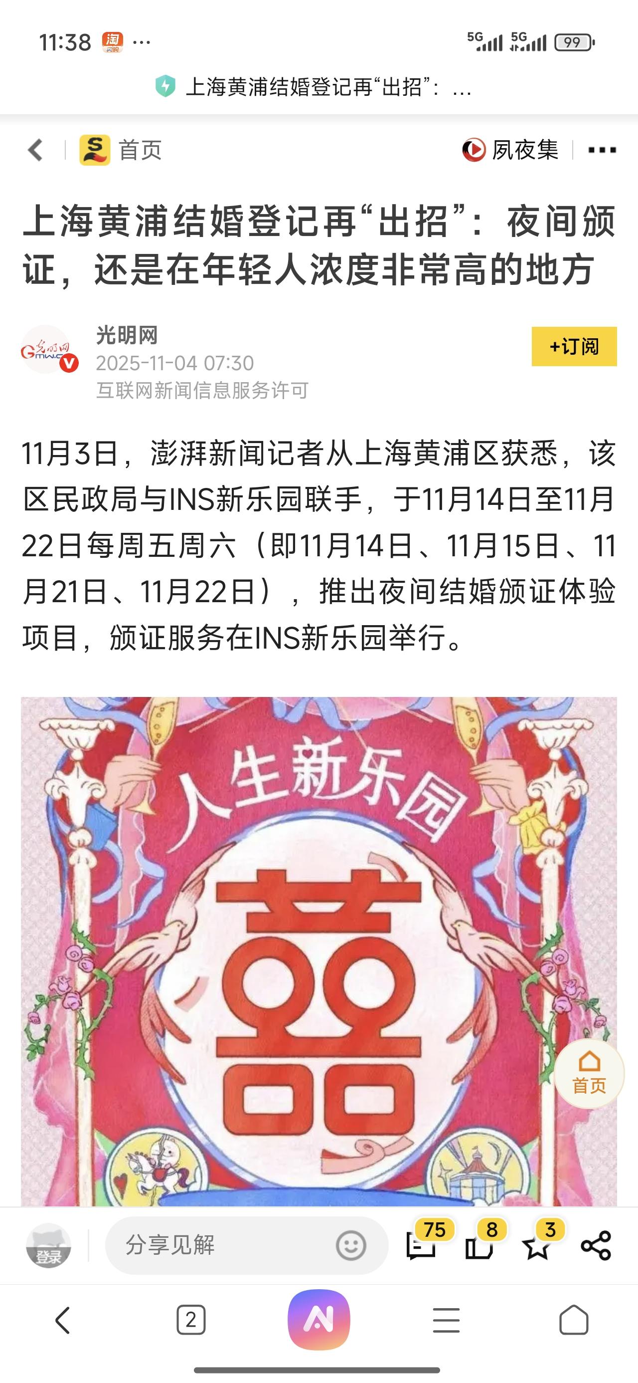 首先,值得肯定的是这些年民政机关为简化结婚流程、提升服务体验,迎合年轻人的行事风格做了不少事情。但是,客观的说,结婚是人生大事,不是去菜市场买个菜那么简单、仓促的决定。那种仓促结婚的,虽然一时提高了结婚率,大概率不久之后也会提高离婚率。要提高结婚意愿大概率不是民政局延长工作时间,换一个办证地点,人家就能由原来的不想结婚转变为不结婚。要劝年轻人结婚还是要有够硬的政策,比如:一次性奖励5万、8万,婚礼费用报销,房贷利息补贴10年,买车补贴5万,生孩子再补贴10万。如果有地方拿出够有吸引力的奖励政策,不相信结婚率、生育率不上去。