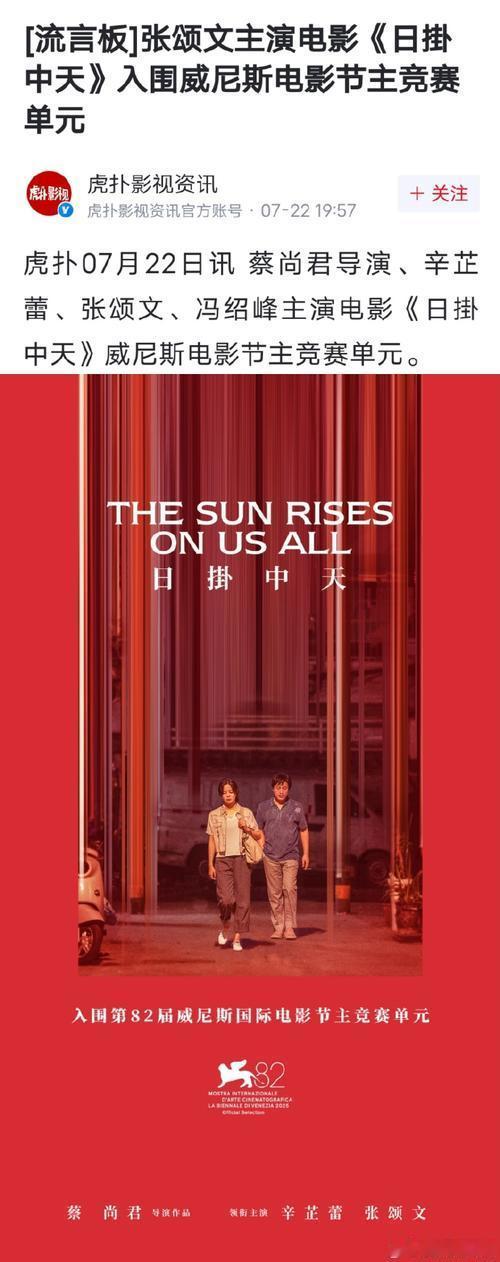 让辛芷蕾拿下威尼斯影后,《日掛中天》开启点映。