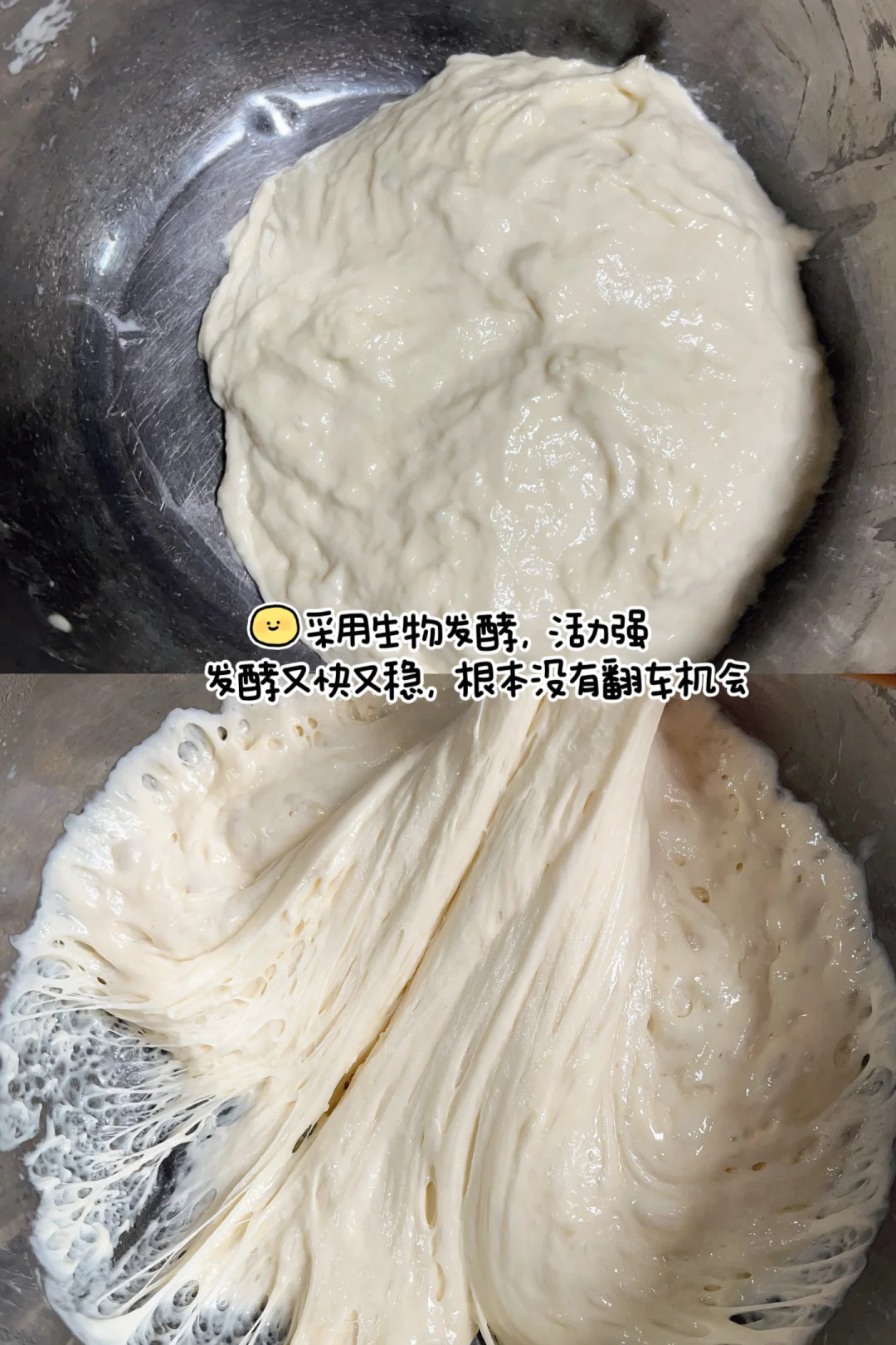 1⃣️300g面粉加酵母清水白糖搅拌无干粉,放冰箱冷藏发酵一晚