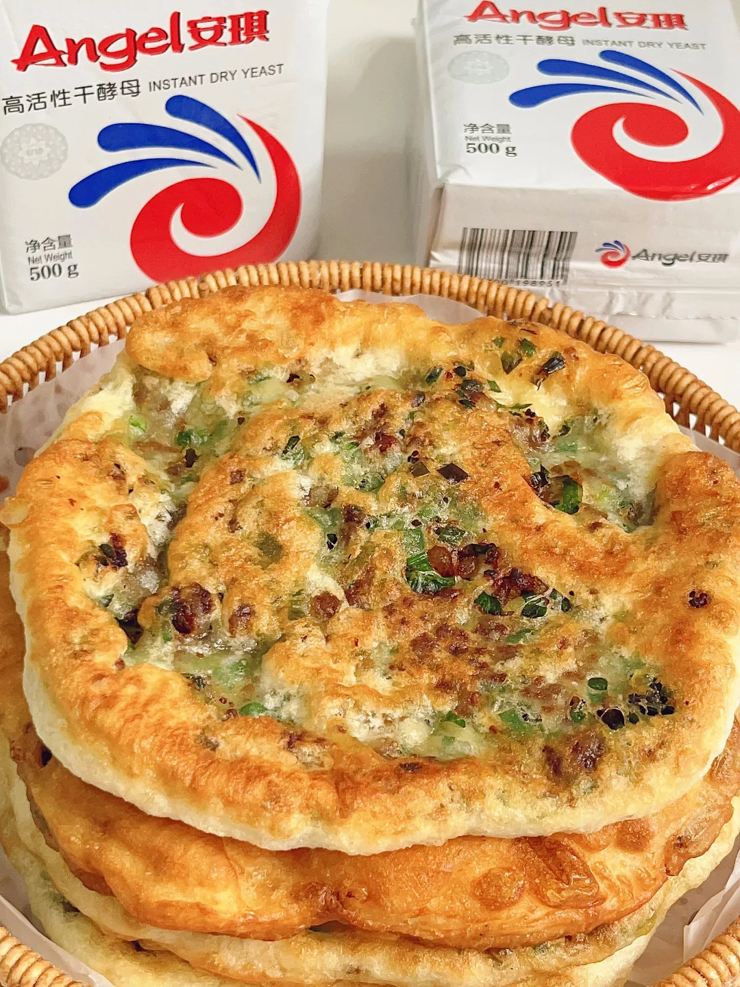 做法很简单, 能不早起就绝对不早起,晚上和面早上煎饼真的很绝,和面发酵用的酵母是安琪酵母,安琪是大牌国货,专注面食发酵,酵母类产品总产能产过35万吨 ,居亚洲第一,我做面食比较多,家里常备的酵母都是安琪的,自然生物发酵,发酵成功率高,常温发酵快,低温发酵出来的面团很柔软,发酵好的面团扒里面全是蜂窝状,我平时做馒头包子还有肉饼都是用的这款酵母。