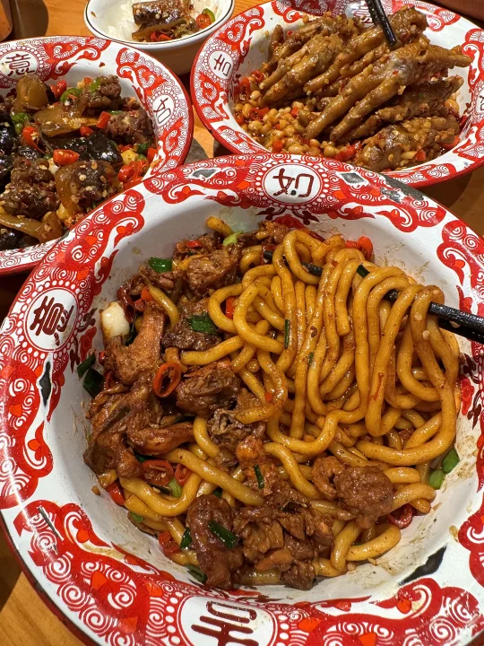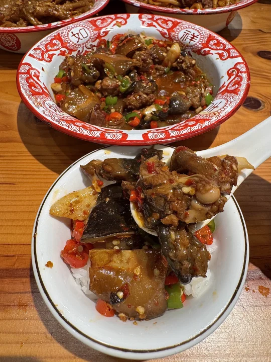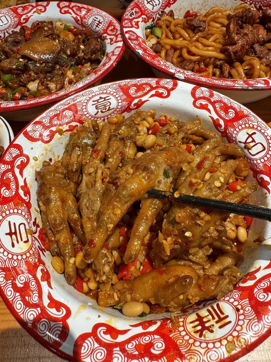 和朋友5天吃了4次!!全是好评好好吃😭 不是预制菜吃得出的锅气~还没上桌香味先来!!粉条小炒鸡,鸡肉鲜嫩入味粉条qq弹弹,黄豆烧鸡爪、红烧甲鱼、红烧肉、剁椒鱼头。。一定会是我再去n刷的店(田耕记