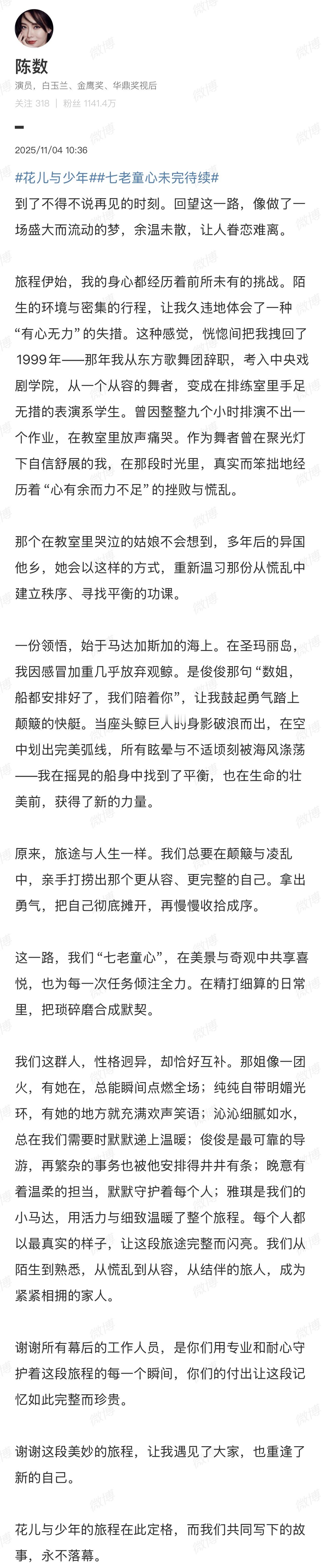 花少让陈数重逢了新的自己 陈数首综超戳人!马达加斯加“我来结录”稳全场,民宿写信道尽每个人特质,体力不支仍从容。不逼自己合群,守节奏暖旅程,从局促到笃定,重逢更舒展的自己!