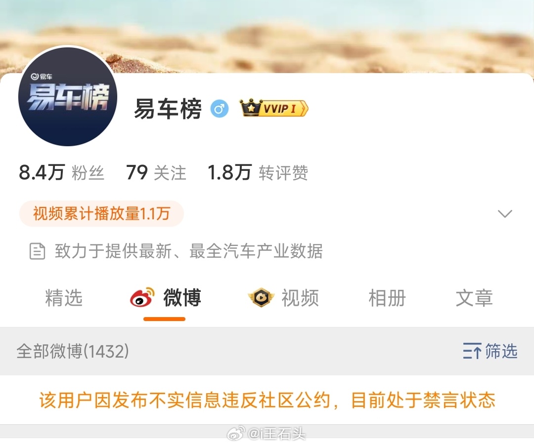 听说易车榜发布的一个榜单把自己坑了,禁言了。