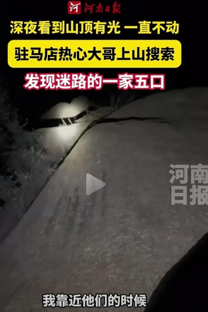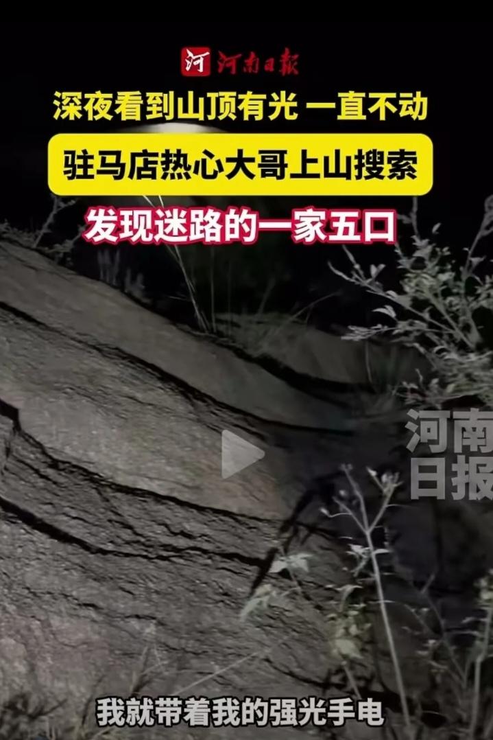 河南驻马店,男子深夜看到山顶有光一直不动,于是上山搜索,结果发现迷路的一家五口!网友:一般人即使知道看到有光,也不会想到会有人被困。大哥不仅想到了,而且做出了行动!真是好样的! 李大哥住在山脚下。这天深夜,万籁俱寂,李大哥却睡不着,去院子里抽烟。不经意间,他抬头望向山顶,发现有一束手电筒的光在闪烁。起初,他并未太过在意,可仔细一瞧,这光却一直在原地打转。凭借着多年生活在这片土地上的经验,李大哥心里怀疑大概率是有人被困在山上了。 要知道,山上的夜晚可不像城里那般温暖。冷风呼啸而过,气温骤降,如果不及时把被困的人救下来,说不定还会出现生命危险。想到这里,李大哥没有丝毫犹豫,他迅速套上外套,拿起自己的强光手电,朝着山上冲去。这条山路崎岖,到了晚上难以分辨方向。更何况,对于那些不熟悉路况的人来说,这山路就像是一个巨大的迷宫,稍有不慎就会迷失其中。 李大哥一边艰难地往山上走,一边扯着嗓子大喊:“山上的人,你们是不是迷路了?”“是的,是的……”黑暗中,终于传来了回应的声音。李大哥赶紧竖起耳朵,仔细辨别声音传来的方向,然后朝着那个方向快步走去。经过一番艰难的寻找,他终于在一片乱岩石堆里找到了不慎迷路的一家五口。其中有3个孩子,冻得瑟瑟发抖,缩在乱石堆里。 看到有人来救自己,这一家五口激动得热泪盈眶,他们紧紧地握住李大哥的手,嘴里不停地说着感谢的话。李大哥安慰了他们几句,然后小心翼翼地带着他们,一步一步地越过一个个沟壑。在他的带领下,他们终于顺利地爬下了山。 这事传到网上,网友们都炸开了锅。有人说,换作自己,深夜看到山顶有光,顶多嘀咕一句“谁大半夜在山上晃悠”,压根不会往“有人被困”上想,更别说往黑黢黢的山里冲了。还有人提到,驻马店那片的山,夜里风刮得跟哨子似的,还容易踩空摔进石缝,李大哥敢一个人上山,不光是心善,更是有股子“不怕事儿”的勇气。有位当过消防员的网友说得实在,这种深夜山地救援,最怕的就是救援者自己迷路,李大哥凭着对山路的熟稔带大家下山,这哪是普通村民,简直是“民间救援高手”。 我倒觉得,李大哥的举动,藏着咱普通人最珍贵的善意——没想着要啥表扬,也没算过有啥风险,就觉得“有人可能要出事,我得去帮一把”。现在不少人遇到事儿先想“多一事不如少一事”,可李大哥偏不,他用那束手电光,不光照亮了一家五口的回家路,更照出了人与人之间最暖的联结。各位读者你们怎么看?欢迎在评论区讨论。