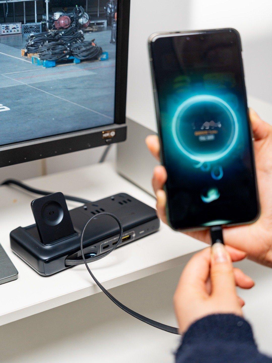 倍思桌面充电站超薄的设计,往桌上一放没什么存在感,再也不用在一堆充电设备里翻山越岭找接口结果协议还不匹配了。全协议设计还能兼容多个品牌,像我这样经常换不同手机的群体,快充体验这一块直接兜底了。要是大家喜欢 整点桌搭玩玩,极简超薄的设计大家也看到了,几乎能融入每一种桌搭风格中,有颜有实力!