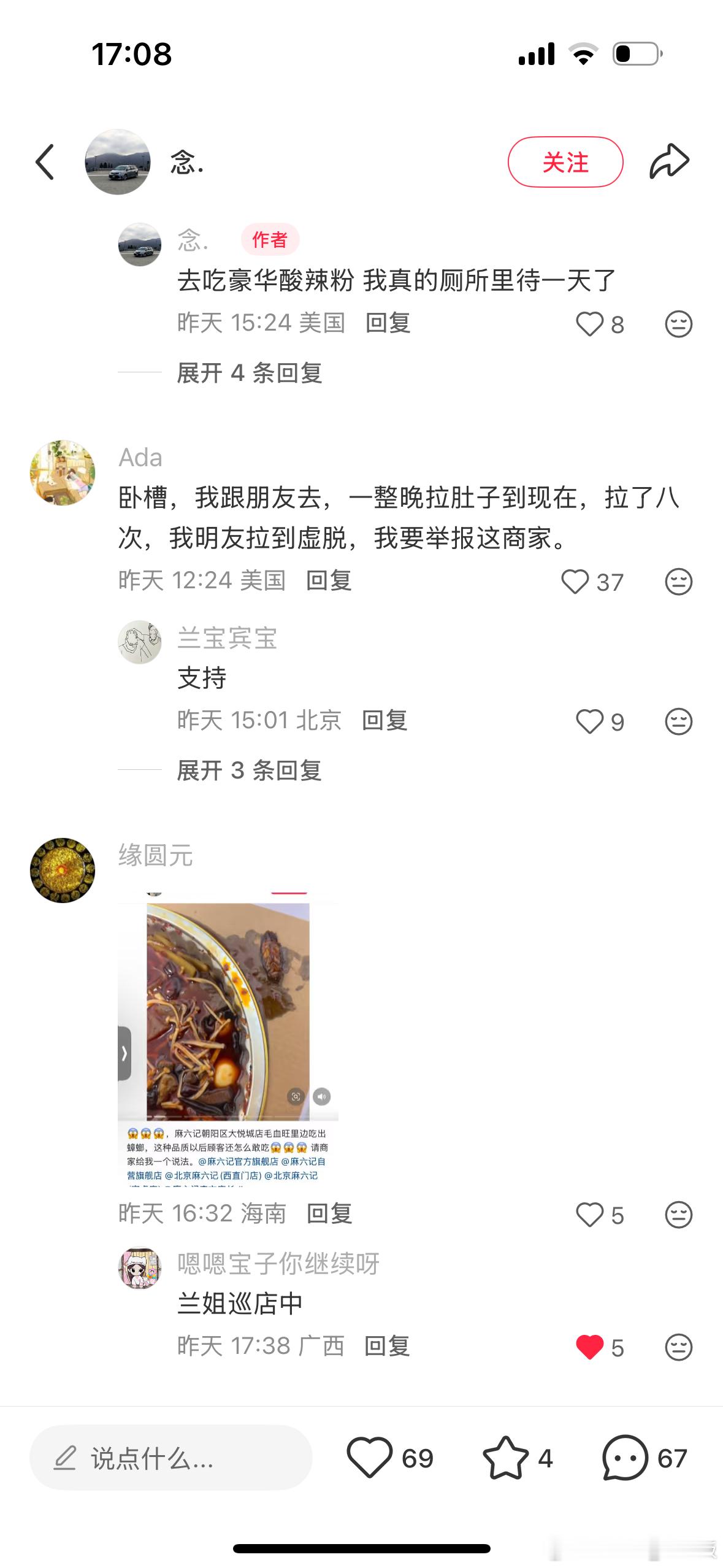 洛杉矶麻六记出现多起顾客腹泻小地瓜好多ip美国的用户说吃了麻六记拉肚子。那对母子肯定又要说是黑粉在黑他们了[doge]跨国黑粉集团这可千万不要放过呀,赶紧官司打起来[祈祷]