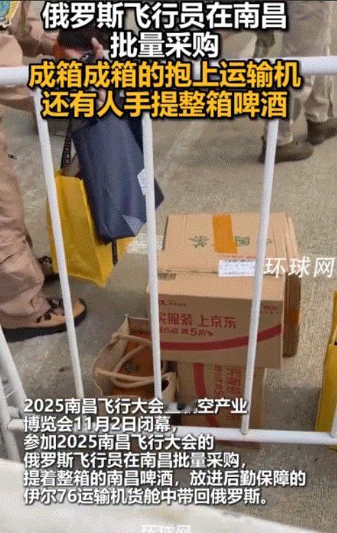 俄罗斯飞行员到南昌“进货”:成箱啤酒搬进机舱,抱着“东风-5C”一起回家   11月3日,2025年南昌飞行大会胜利落下帷幕。这次大会的亮点之一是,俄罗斯“勇士”飞行表演队首次到访南昌,驾驶着苏-35重型战机献上了精彩的飞行表演,从“落叶飘”、“眼镜蛇”等经典特技动作,到发射干扰弹,都赢得了观众们的掌声。   这支队伍这次带来了6架苏-35S和1架苏-30SM战机,刚亮相就把现场气氛拉到顶点。有观众拍到,他们不光会“眼镜蛇机动”,还表演了四机同步横滚、四机向上开花,甚至两机对冲这样的高难度动作。旁边看展的大爷忍不住拍大腿,嘴里直念叨“这才是真硬核”。   俄罗斯飞行员从到南昌那天起,就透着股“松弛感”。他们刚下飞机时,从座舱里递出大包小包的行李,旁边记者顺手帮着接了一把,这一幕被拍下来后,网友都笑说“这互动太接地气了”。表演结束更热闹,这群飞行员没急着收拾装备,反倒忙着“扫货”中国特产。   有人撞见他们搬着成箱的啤酒往机舱里运,虽然没明说牌子,但联想到之前珠海航展上他们带青岛啤酒当伴手礼的事,不难猜又是盯上了中国的好酒。   除了啤酒,他们还收了份特殊礼物——总台记者送的《空天利剑:中国空军战机图志》。飞行员捧着画册特开心,直说要带回俄罗斯基地,网友见状调侃“这是想把‘中国战机’打包带走啊”。   至于“抱着东风-5C回家”,其实是网友开的玩笑。东风-5C是9月抗战胜利80周年阅兵上刚亮相的洲际导弹,射程能覆盖全球,还能携带分导式弹头,是实打实的大国重器。   这次南昌飞行大会设了航空航天科普展,当然有相关模型展出。飞行员们逛展时肯定留意到了这型导弹模型,再加上收到的战机画册,才被网友调侃成“要抱东风-5C回家”。   这届飞行大会本来就热闹,除了俄罗斯“勇士”,还有中国空军“天之翼”、欧洲“空中骇客”等6支王牌队伍。“天之翼”飞的初教-6还是南昌造的,表演的“九机雁队”和俄罗斯的特技编队相映成趣。观众们白天看战机炫技,晚上刷到飞行员搬啤酒的视频,都觉得这场交流特别实在。   俄罗斯飞行员临走时,还对着镜头挥手道别。他们机舱里既有刚表演完的苏-35S,又有成箱的特产和战机画册,这场景被拍下来后,网友评论说得特实在:“这哪是参展,分明是来走亲戚进货的”。这场飞行大会不光让大家看爽了特技,更见着了中外航空人的实在情谊。