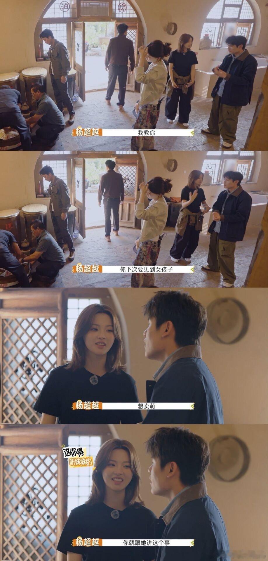 杨超越教何广智卖萌 超越一边示范一边笑场,广智一边学一边自我怀疑:“我是不是太硬了?” 超越秒回:“你不是硬,你是油!” 全场爆笑!这互动太真实,像极了闺蜜互损现场,自然又轻松。