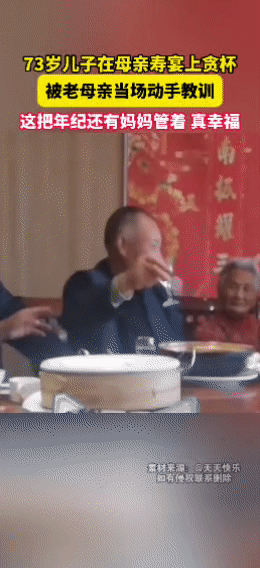 在一场温馨的寿宴上,73岁的儿子忍不住贪杯,一旁的老母亲见状,当即动手“教训”。尽管已是古稀之年,在母亲面前,他依旧是那个需要被叮嘱的孩子。那看似“教训”的举动里,满是母亲的牵挂;而儿子嘴角的笑意,更是藏着被母爱呵护的幸福。 都这把年纪了还有妈管着,真是让人羡慕啊!老年人生日宴 高龄老人生日会 母亲 日常分享