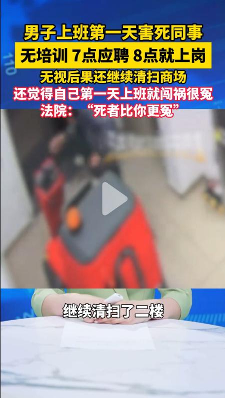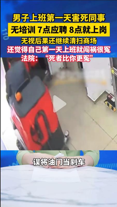 未经任何培训害死同事,居然还喊冤? 事情起因是,62 岁的张某应聘商场保洁,未经岗前培训就被安排开洗地机。张某在操作车辆准备排队上电梯时,看到同事后一时紧张竟把油门当刹车踩,从后面将同事连人带车一同撞进十几米深的电梯井,同事当场没了气息。 更离谱的是,主管居然让他接着去清扫二层,压根没让他守现场。后来面对民警,他还委屈,说公司没教、自己不是故意的。 最终商场赔了 140 万,他赔 8 万,他也被公诉了。说实话,公司确实失职,但是张某抱有侥幸心理,实际上并不冤枉! 男子上班第一天害死同事 自称很冤 社会百态