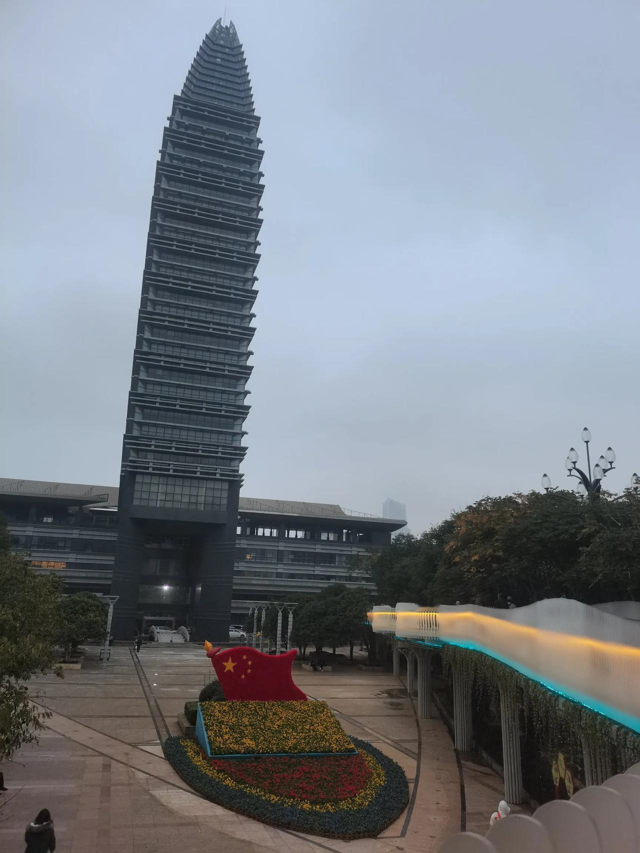 位于人民路上的这个楼是五华区政府办公大楼 也算是一个昆明的地标建筑了,楼下广场叫胜利广场,这些市中心的建筑都是有一定的历史来历的吧!可以说这个应该也是得到过“鲁班奖”的吧!要不就是没有参加评选,这个建筑正面看,侧面看都非常的漂亮。以上仅供参考,属个人意见。