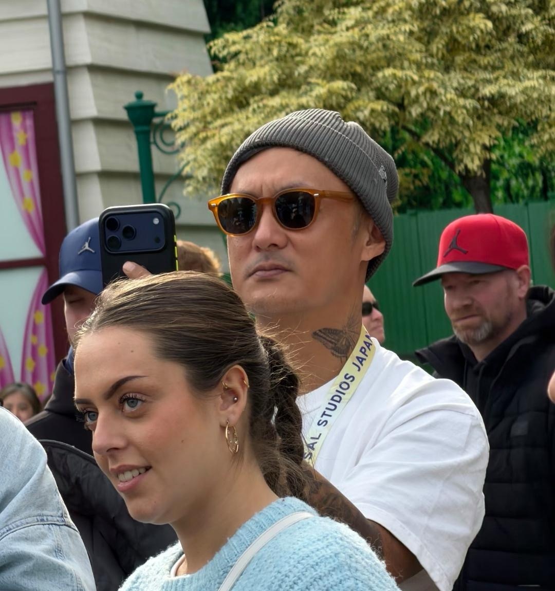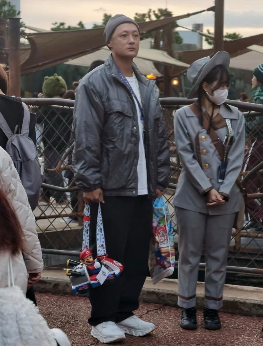 43岁余文乐和家人到日本环球影城游玩,他戴着老头帽,皮肤黝黑,面相看起来好奇怪,颜值大不如前啊!