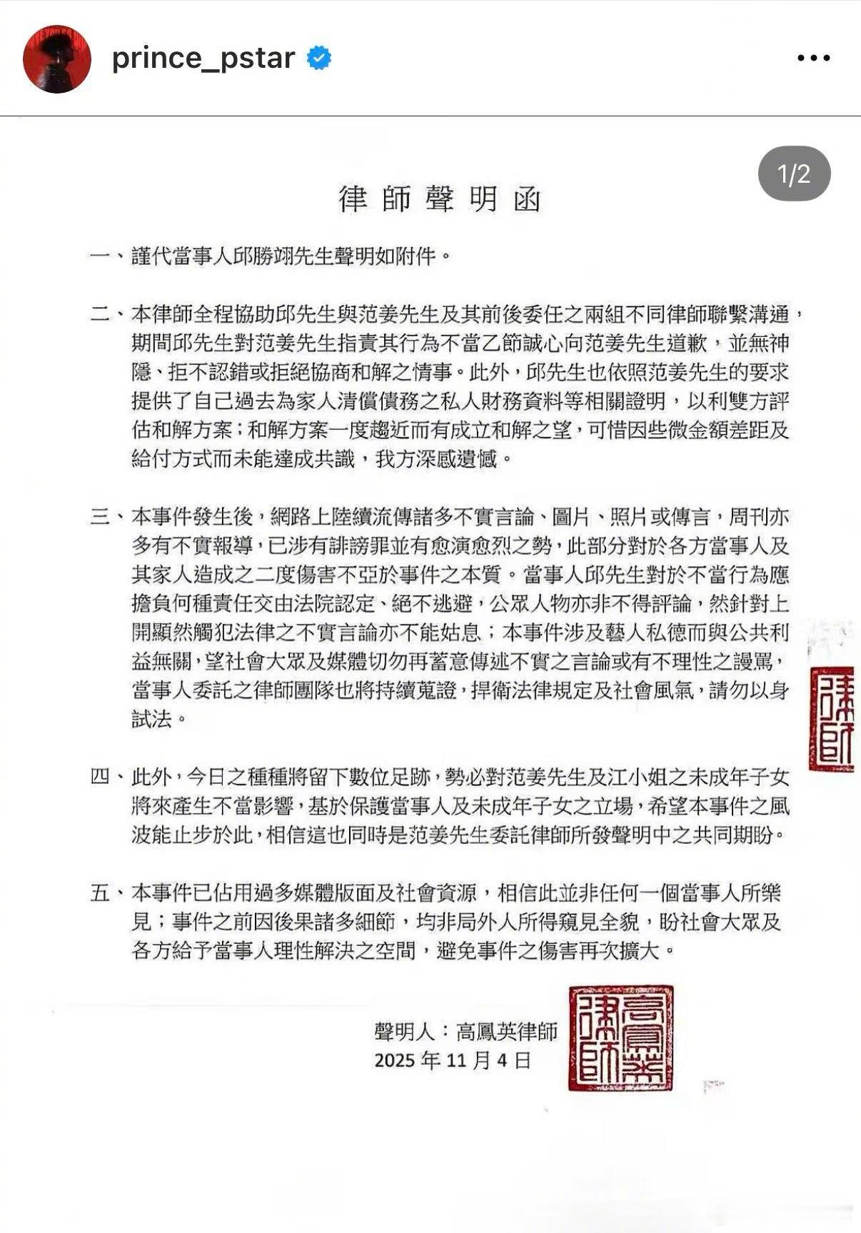 棒棒堂成员王子邱胜翊向范姜彦丰和粿粿道歉,称亲自向范姜彦丰当面鞠躬道歉并多次商讨赔偿金额