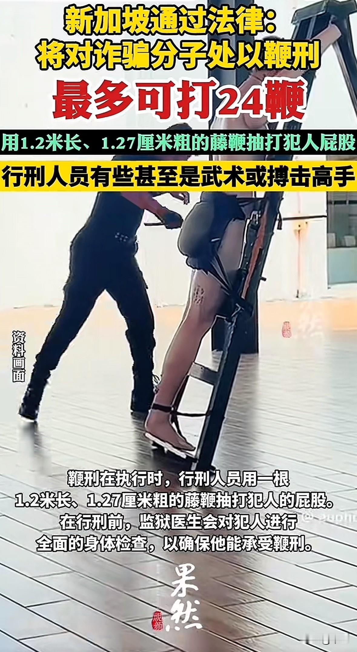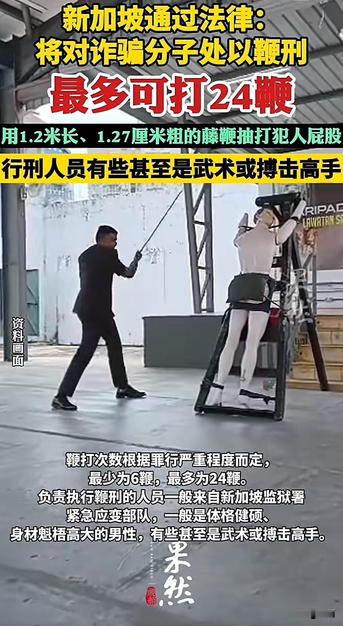 2025年11月4日新加坡国会通过新法律,诈骗分子将被处鞭刑。主谋、团伙成员等罚6-24鞭,帮洗钱、提供SIM卡的最高12鞭。 新加坡诈骗案占总犯罪60%,2020年至今受害者损失38亿新元,今年上半年近2万起案损4.56亿。之前只监禁罚款,威慑不够。 鞭刑用1.2米长藤鞭,50岁以下健康男性才适用,医生全程监督,3鞭就皮开肉绽。 严惩诈骗是为了护民众财产,这种重罚能形成强力震慑。不过也有人觉得刑罚太狠,但对骗走别人毕生积蓄的罪犯,严厉处罚才对得起受害者。每个国家治法思路不同,能有效遏制犯罪就是合适的选择。