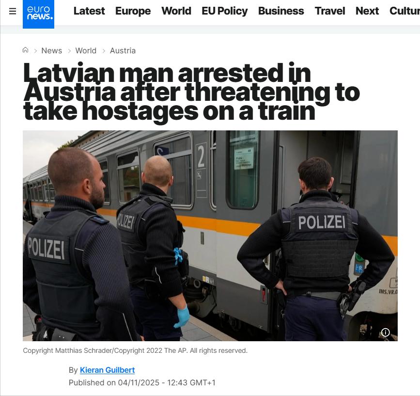 奥地利差点就步了英国亨廷顿的后尘: 奥地利刚刚挫败了一起袭击:来自波罗的海三小强之一拉脱维亚的31岁男子,向多名乘客扬言要在从维也纳出发,在开往因斯布鲁克的火车上劫持人质。于是他在付诸行动前,于半路上的萨尔茨堡中央火车站被奥地利特种部队直接带走。好在男子没有任何武器,但极度充满攻击性,还弄伤了一名奥地利特种部队队员。 无论是不是精神卫生问题,还是其他原因,这样的行为都令如今的欧洲人心惊肉跳——要再来个英国那样的,真保不准谁的结果会更糟糕。