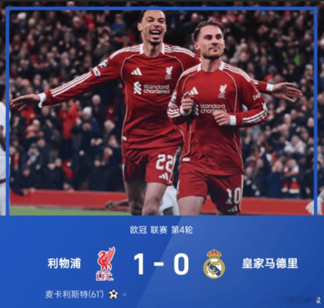 欧冠战报:麦卡利斯特头球一锤定音,利物浦1-0皇马足球利物浦vs皇马