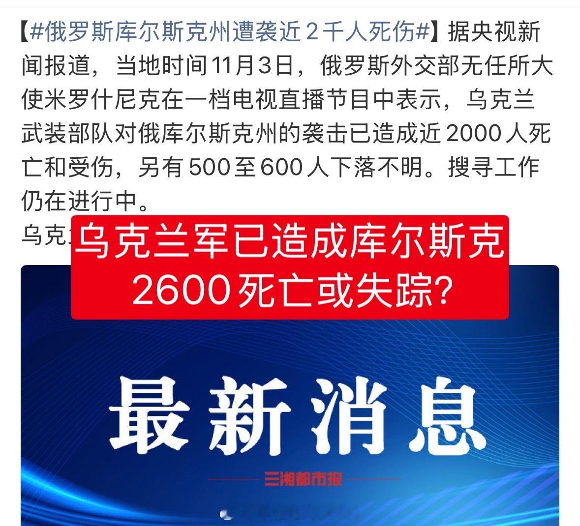 乌克兰军已造成库尔斯克2600死亡或失踪?