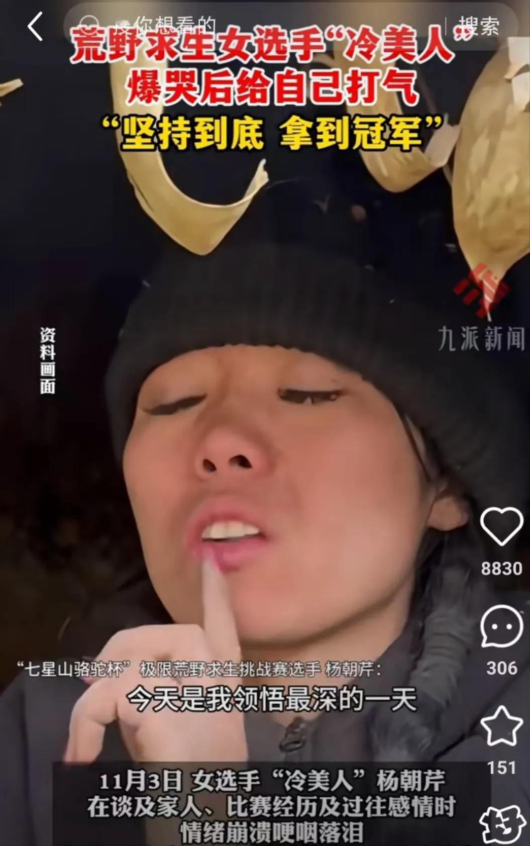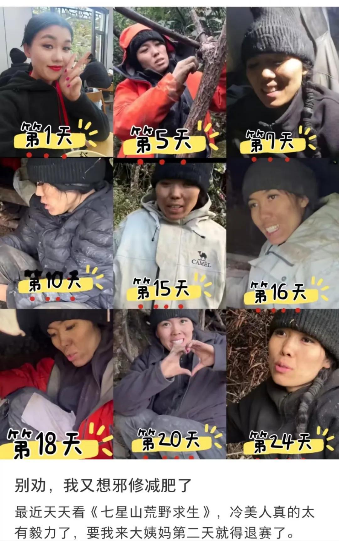 看荒野求生第27天直播,满脑子就一个念头这哪是比赛 分明是平时看她蹲野果树下摘果手不抖,啃野菜试毒眼不眨,今天突然蹲庇护所前抹眼泪,嘴唇皲裂得像晒干的树皮,指甲缝里的泥垢都没擦,看得人心尖直颤。 女观众们哪能不懂那股子劲——参赛第二天就撞上生理期,40天靠野果野菜填肚子,瘦得衣服都挂不住,现在又赶上经期前激素波动,再强的人也扛不住那股子委屈。 谁说荒野求生只比体力?女人在极端环境里扛的那些难,才是最戳心的生存考验啊。你们看她哭的时候,是不是也想起自己咬牙硬撑的日子?荒野求生比赛 荒野求生女选手