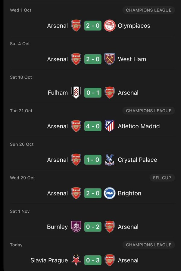 阿森纳又是零封! ⛔️他们以 3-0 战胜布拉格斯拉维亚,取得了连续第八场零封对