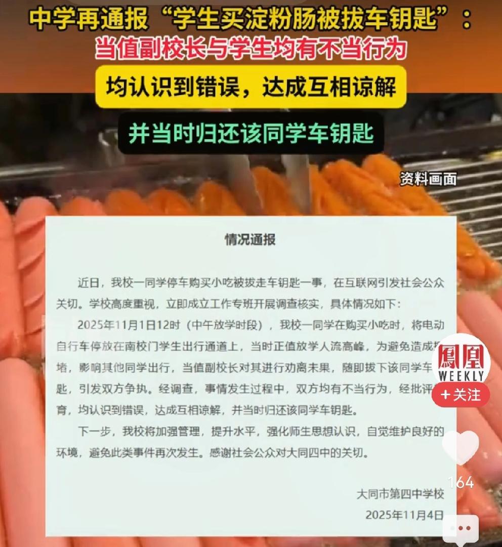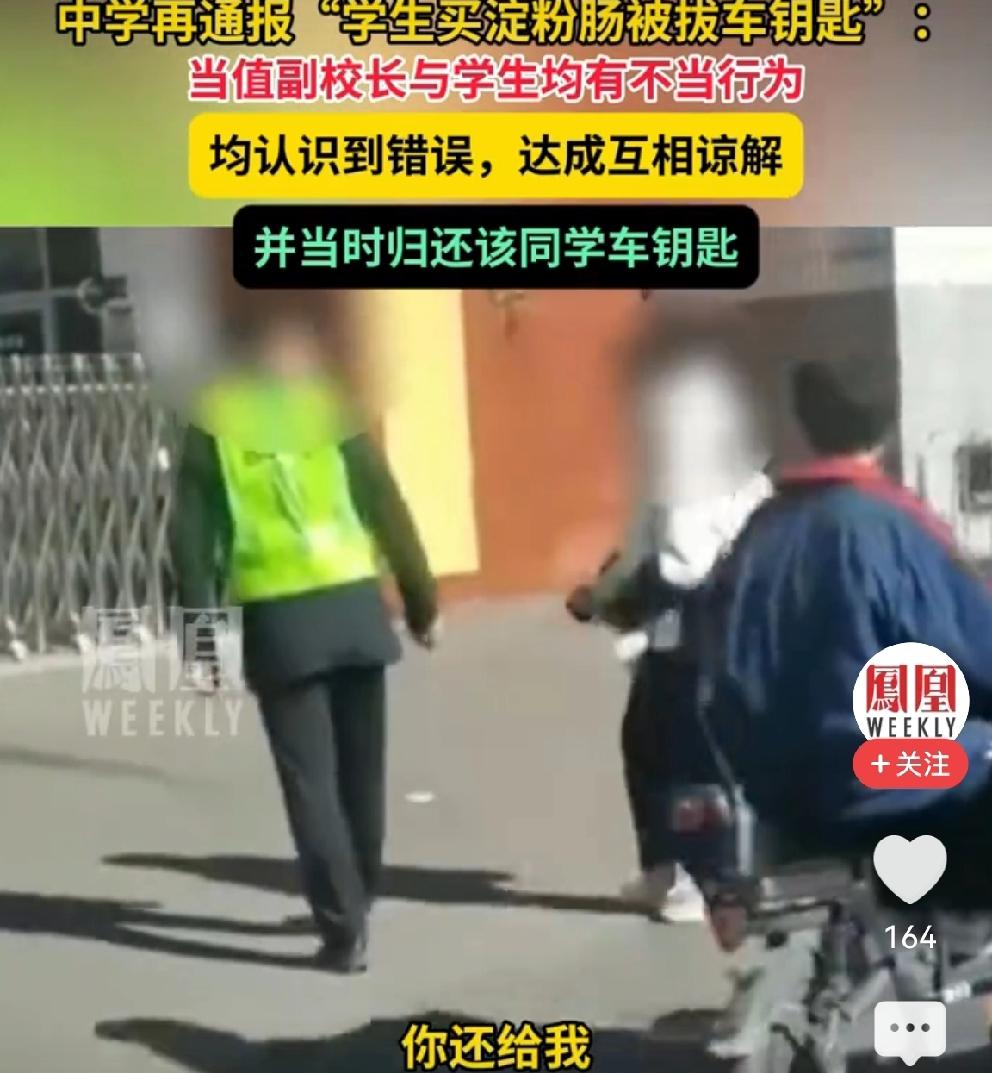 无能的校长,小题大做! 看了原视频,也看了学校通报,有几点看法: 1、当时校门口车流通畅,没有拥堵; 2、值班副校长拔女生车钥匙,欺负人; 3、假如造成拥堵,应该管小摊小贩 4、学校通报拉偏架,有些不能自圆其说 这个副校长,连这样的小事都处理不好,真的很无能很愚蠢。 校门口到处都是摄像头和手机,你这是自己一不小心当了网红! 教育学生是门艺术,简单粗暴,只能招致学生的反抗和厌烦。 一个对学生没有爱的人,不配当老师,更不配当校长。
