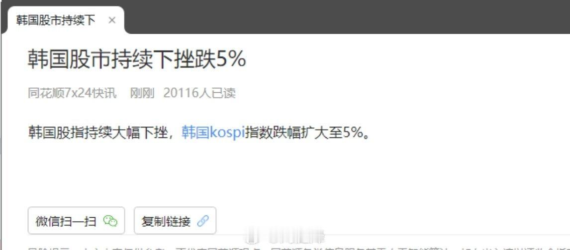 韩国KOSPI指数跌超5%,触发熔断纳指跌1.59%