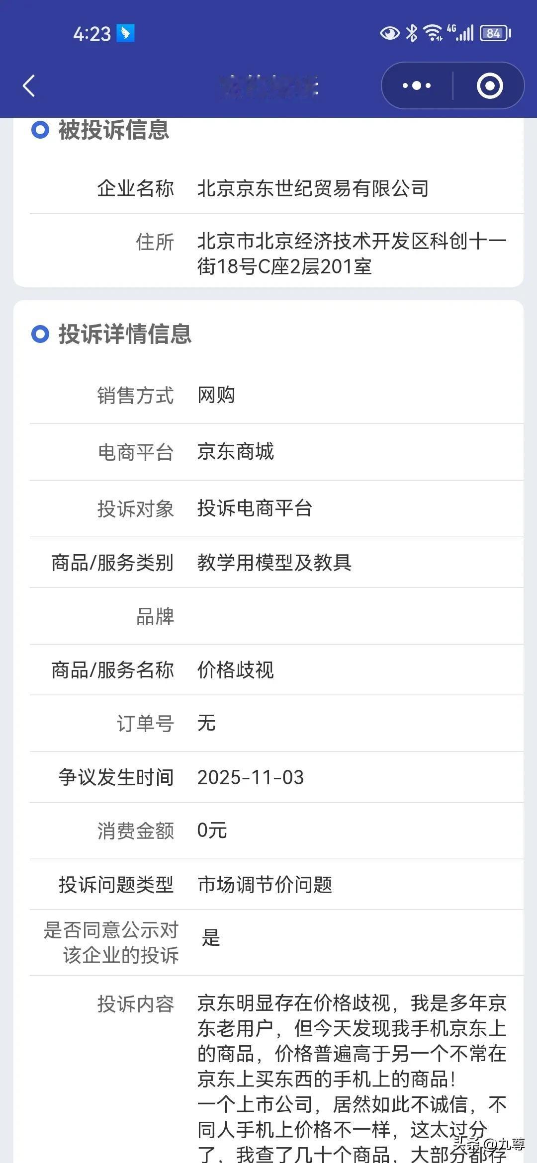京东,价格宰熟,存在价格歧视,作为多年的老用户,价格却比没怎么在京东上购物的用户高! 而且有些还高很多,尤其是价格比较高的手机,笔记本之类的 我已经截图投入到12315消费者投诉部门了,没想到作为一个上市公司,居然玩这种伎俩,京东怎么会如此无耻,投诉客服也没用,只能投诉到消费者协会 不同手机上,相同的商品价格却完全不同,差别很大!