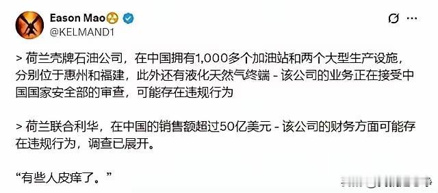 大家看看,风这不就刮起来了吗?这种消息有可能是提前的一些预警。 也有可能就是荷兰方面做贼心虚,故意放出消息来试探一下咱们的反应。 但是不管怎么说,这两家企业就是荷兰的软肋。 大家猜一猜这两家企业真的不怕查吗? 他们真的一点问题都没有吗? 还是让子弹飞一会儿吧。 有句俗话讲。 将军赶路不追小兔! 我们国家现在着眼的是民族统一复兴的大计。 是更上一层楼的十五五计划。 而不是为了荷兰这只小兔子耗费精力。 好多人都在想,我们要报复他,我们要打击他。 根本就用不着我们只是在执行我们国家发展计划过程中。 慢慢慢慢的就把它碾压了。 就好像农民在春天耕作土地一样。 我们本来没有那个心思。 但是田埂上的蚂蚁窝就已经遭到了灭顶之灾。 大家能听懂这个意思吗? 就是说我们正常的耕种,我们正常的发展事业。 但是无意间就把很多蚂蚁窝给挖了。 荷兰实际上就是小小的一只蚂蚁窝罢了。 都不用捎带脚。 你不用刻意的去对付他。 在你努力进取的过程中,你就会粉碎他的一切。 因为他太小了。