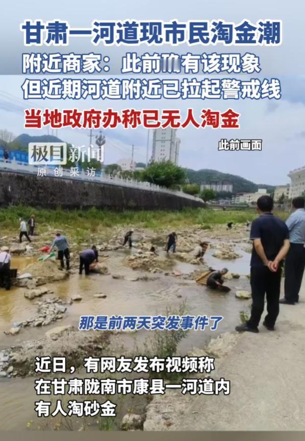 “河里淘金!”11月4日报道,甘肃,陇南康县的一段河道内,出现多人使用搓衣板、筛子等工具在水中淘洗的现象,系部分群众在河道中进行淘洗金砂,网友:支持管控。[得意] 康县部分河道存在砂金的情况已有多年记录,砂金通常与河沙混合,使得部分群众尝试用简易工具进行筛选,尽管方法简单,但一旦参与人数增多,就易对河床结构及水流自然状态造成干扰。 参与者多使用家常工具在河床裸露区域进行筛洗,河道中确实偶有砂金被发现,但数量极为有限,能够真正淘获的人很少。 早在今年年初,就曾因类似行为引发关注,后被政府制止,近期由于河道清理导致河床露出,再次吸引了部分人员前来尝试。 目前河道周边设置了警戒线,并对参与群众进行劝离,康县自然资源局也再次发布公开通知,重申禁止任何个人在河道内从事采金活动,并公布了举报途径,鼓励公众共同参与监督。 金矿等矿产资源属于国家所有,不经过合法审批,任何组织或个人都不得进行开采,私自淘金不仅会破坏河道生态,还可能对防洪构成隐患,行为严重者甚至需承担法律责任。 涉事河道周边现已恢复秩序,此次淘金行为属于局部突发情况,经及时干预后现已得到控制,现场已无人员继续作业。 河道淘金事件引发网络热议,网友们纷纷发表自己的看法,观点各异。 "我的天,搓衣板、脸盆都能淘金?这画面太有年代感了,感觉像是上个世纪的事情。" "这种事情在我们老家那边也出现过,河里有金沙,但真的很少,忙活一天可能就几粒,还不够饭钱。" "支持政府管控!私自淘金破坏河道,万一发大水出事怎么办?不能为了这点小利冒这么大风险。" "说实话,能理解这些淘金的人,现在挣钱不容易,有机会谁不想试试?但确实要合法合规。" "拉警戒线是对的,这种事情一旦开头,人越聚越多,到时候就不好管理了。" "我记得小时候河里还能见到小鱼小虾,现在这种淘金行为肯定影响生态环境。" "关键是这个金矿资源到底属不属于国家?如果是的话,个人确实不能随便开采。" "建议政府可以组织正规勘探,如果真有开采价值,可以创造就业,总比现在这样偷偷摸摸强。" "这种事情年年管,年年有,说明还是有人抱着侥幸心理,光靠堵不行,还得加强引导。" "话说回来,现在金价这么高,也难怪有人动心,但违法的事真不能干,到时候得不偿失。" "看到评论里有人说理解淘金的人,但我不同意,再难也不能违法,这是原则问题。" "其实这种事情最好的解决办法就是疏堵结合,既要严格执法,也要给老百姓找其他出路。" 如果你当地出现了类似的"淘金"机会,你会怎么选择?是冒险一试,还是坚决抵制?欢迎在评论区分享你的真实想法! 信源:浪潮新闻