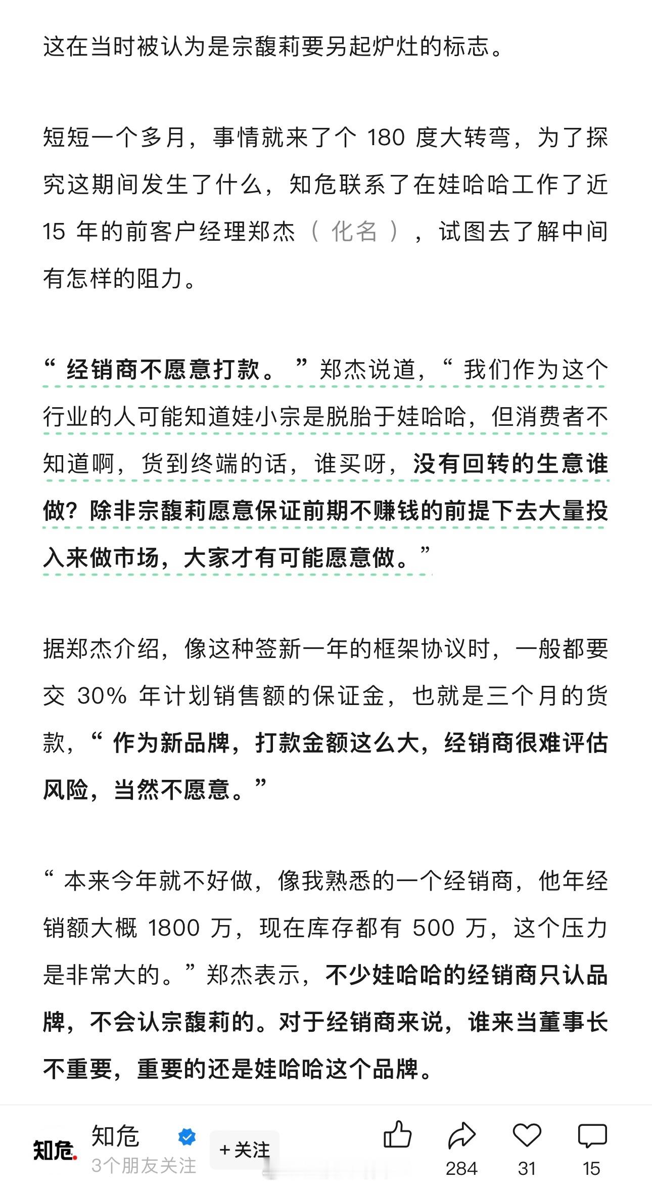 宗馥莉重返娃哈哈,知情人称:她的牌子经销商不愿打款[思考]