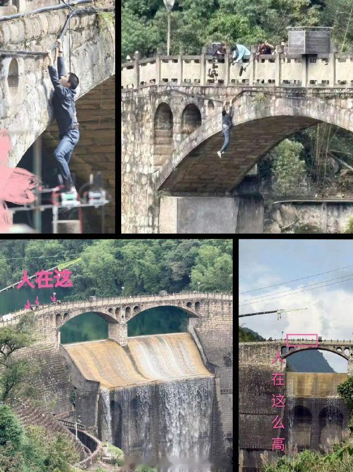 王星越新剧威亚路透看得胆战心惊 王星越新剧《暴虎》水库大桥吊威亚路透,近景看没什么,拉远怎么这么高,看得人胆战心惊了……注意安全呀星越!太拼了