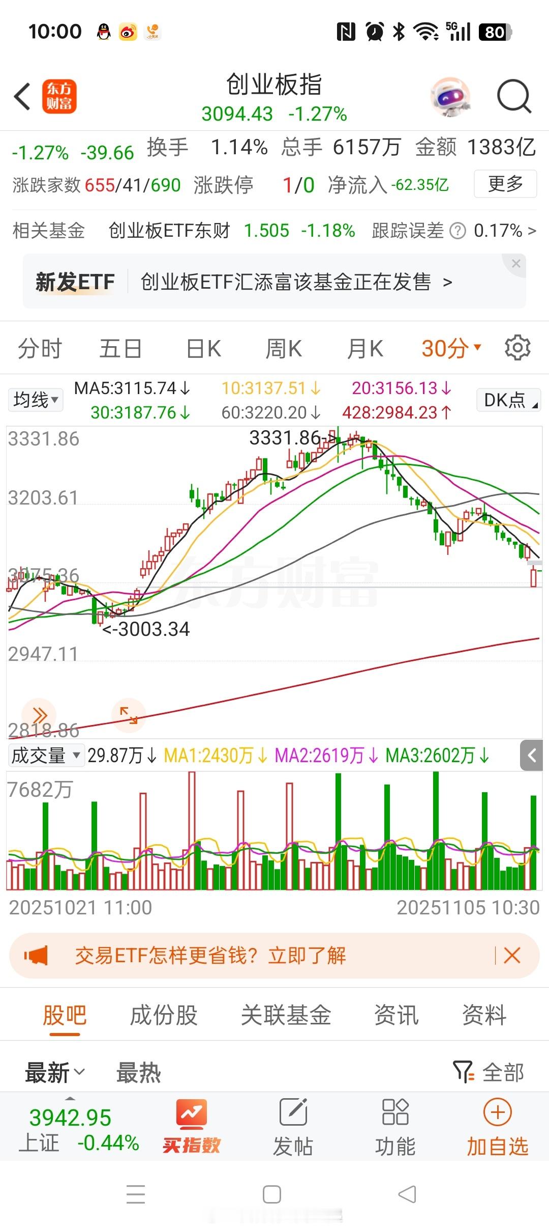创业板指数前30分钟没有放量,我对自己说:不要头铁。
