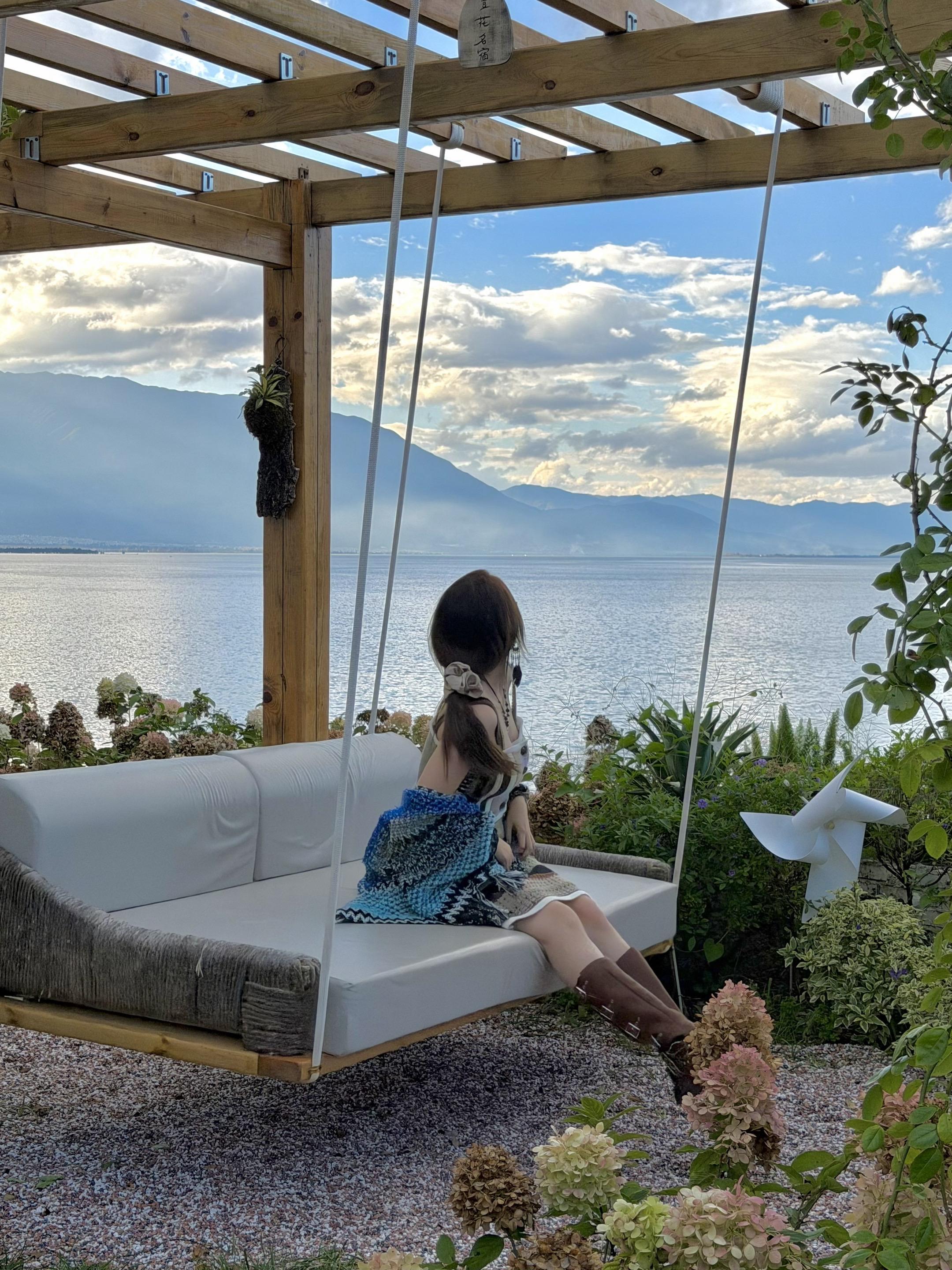 周一上班没动力就看看 在大理住到了一家一面山景一面湖景的民宿酒店 在洱海边慵懒地度过一天 早上在海景餐厅里吃早餐 花园里的秋千好惬意 在观景台感受突然到来的太阳雨 大理的天空好低 看着光从云层间洒下来的时候 感觉人生都明媚起来