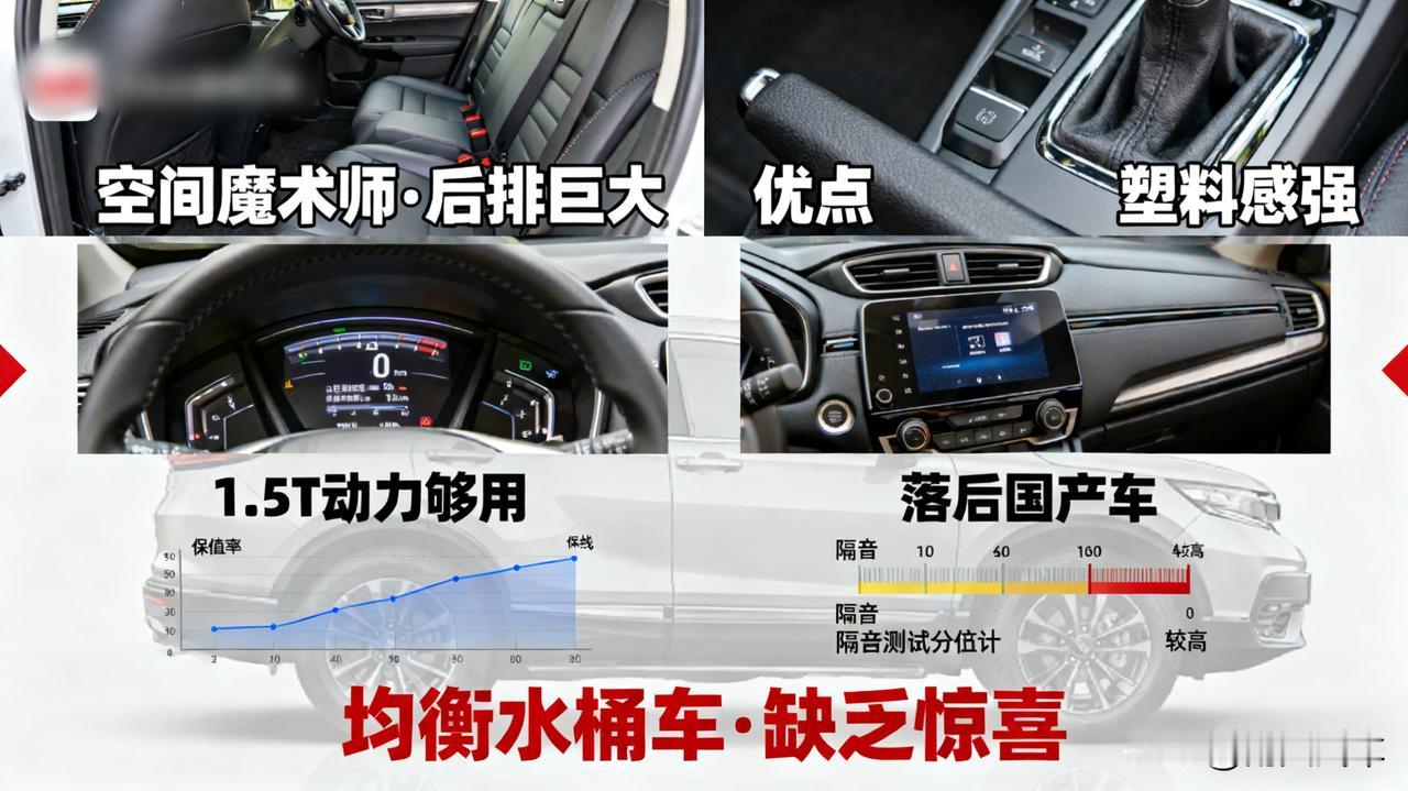 试驾了全新本田CR-V,发现三个不得不说的优缺点! 优点:1. 空间魔术师,后排巨大;2. 油耗确实低,1.5T动力够用;3. 保值率杠杠的。缺点:1. 内饰塑料感还是强;2. 车机系统落后于国产车;3. 隔音一般。 总的来说,是辆均衡的“水桶车”,但缺乏惊喜。 东风本田CRV 本田cr-v 本田新CR-V 丰田本田crv 新crv 本田混动crv 本田CR-V