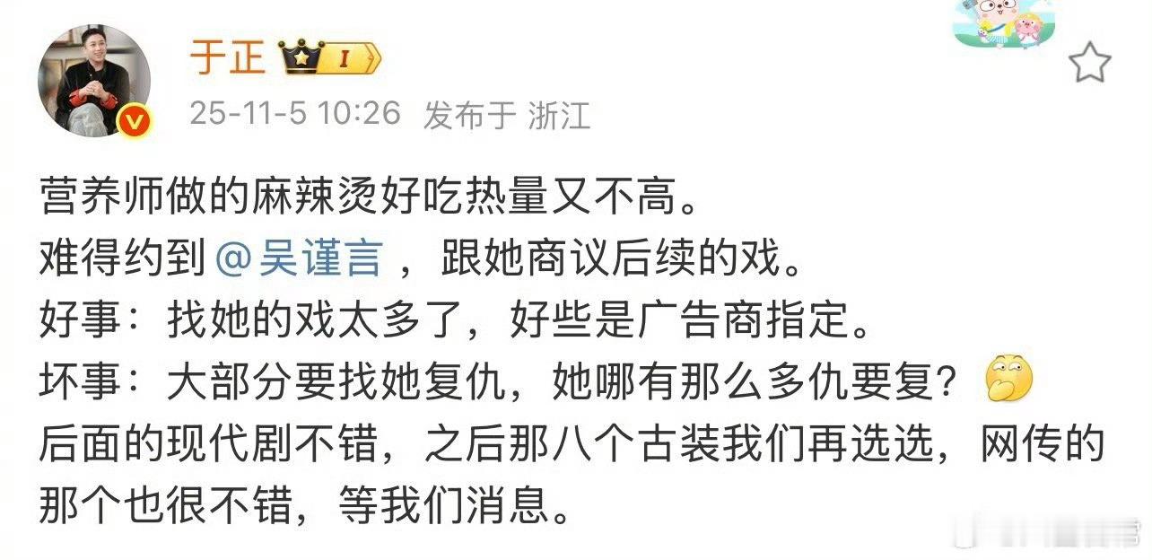 于正说吴谨言有八个古装剧本待挑选于正说吴谨言有八个古装剧本待挑选!!