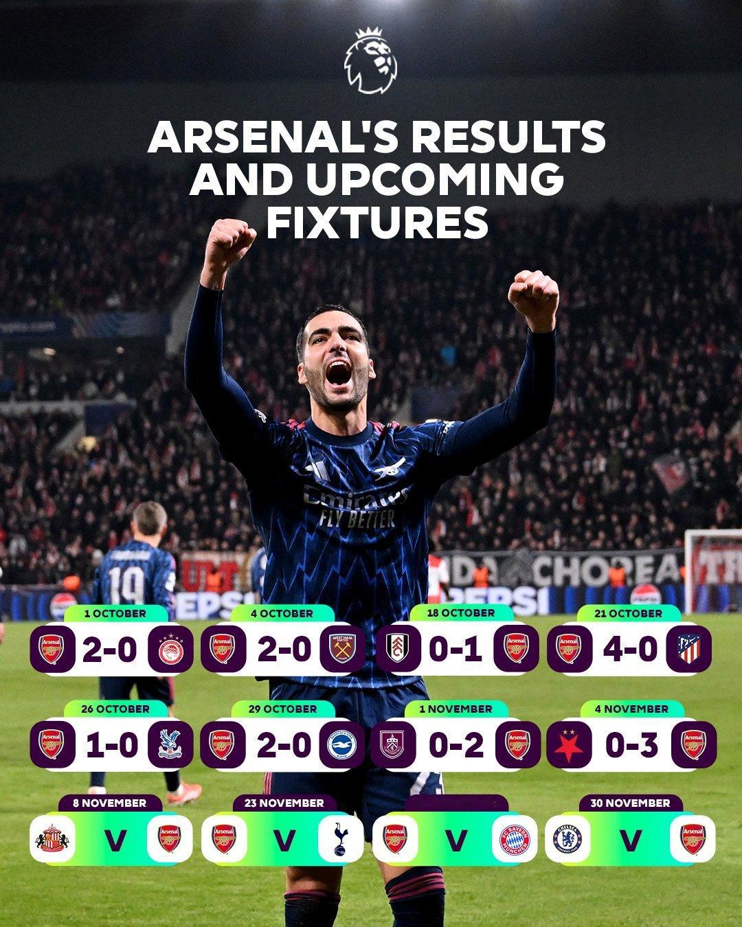 阿森纳接下来的对手:桑德兰、热刺、拜仁慕尼黑和切尔西🔜