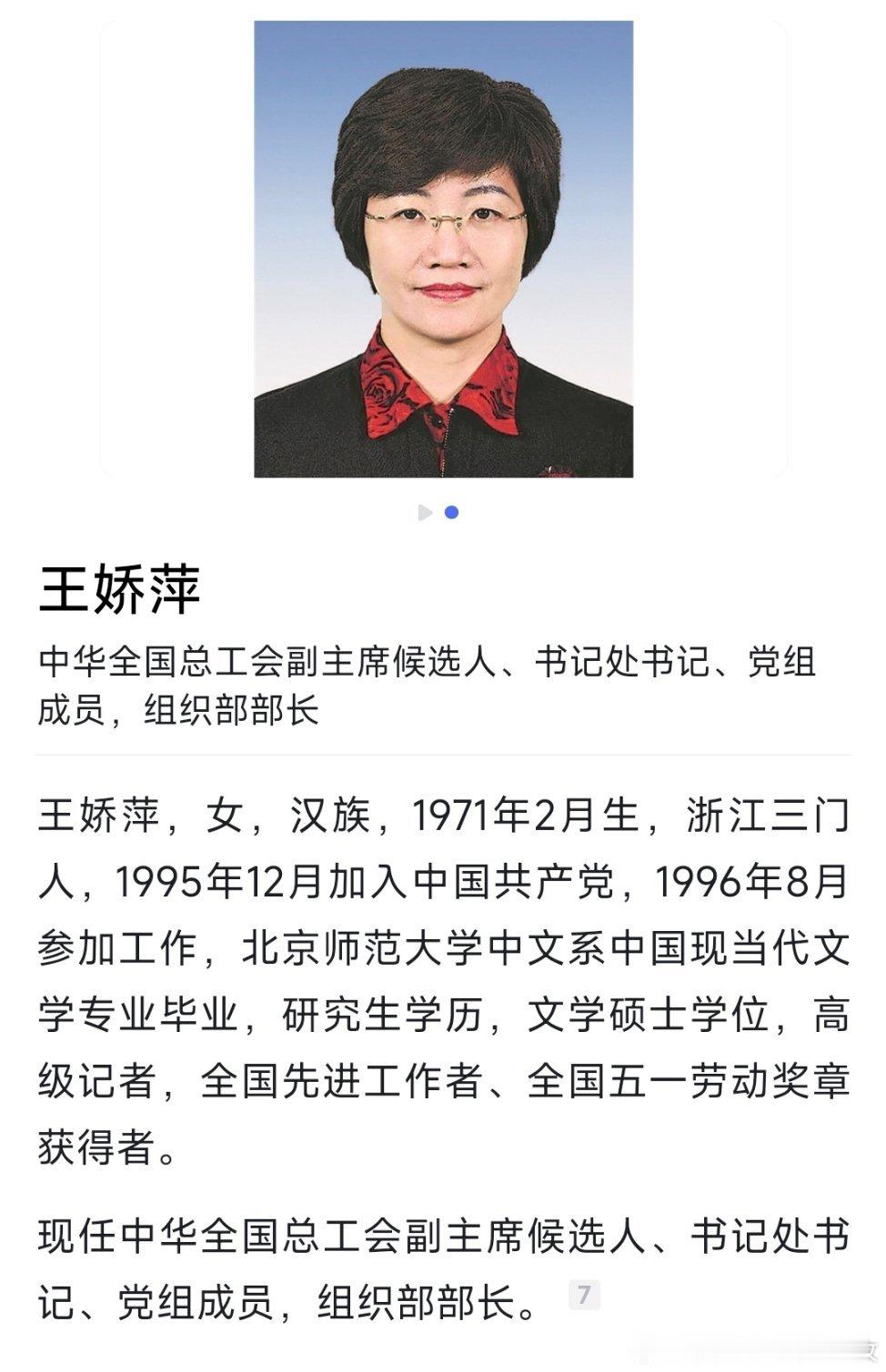 王娇萍任中华全国总工会副主席候选人。热点现场
