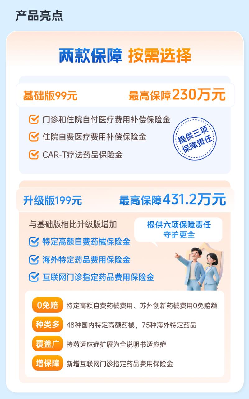 江苏的民生政策一直给我的感觉很惠民,自 2020 年推出,“苏惠保” 便坚守惠民初心,累计参保超 875.6 万人次,赔付超 4.85 亿元,是苏州市民信赖的健康屏障。如今,“苏惠保 2026” 焕新升级,由东吴人寿主承保、16 家险企联合承保,为市民带来更周全守护! 它参保条件宽松,不限年龄、户籍、职业与健康状况,免体检且既往症可承保赔付,苏州市基本医保参保人、异地医保新市民、苏州户籍异地医保人员均能参保。还设基础版(99 元,最高保额 230 万)与升级版(199 元,最高保额 431.2 万),按需选择更灵活。 升级版亮点十足:48 种国内特药械、75 种海外特药、5 种 CAR-T 药品均 0 免赔,特药适应症全覆盖;新增互联网门诊指定药品保障,0 免赔且含问诊购药折扣。连续参保三年无理赔或团体参保,基础版仅 79 元、升级版 150 元。职工医保个账余额还能为父母、配偶、子女投保,家庭共济更安心。 即日起至 12 月 31 日可投保,保障期一年。“苏惠保 2026”,为你的健康再加码!