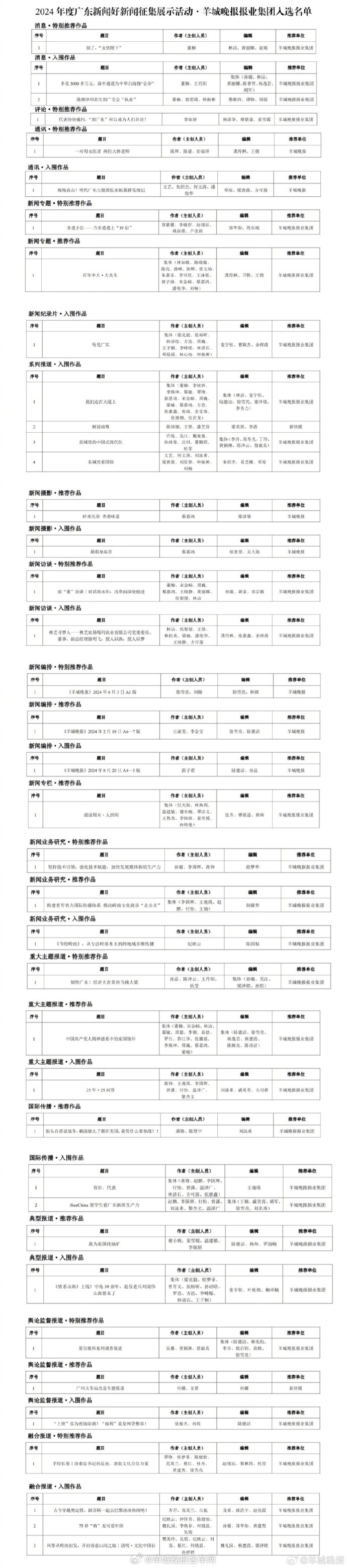 记者从会上获悉,在2024年度广东好新闻征集展示活动中,中央主要新闻单位驻粤机构和省内新闻单位共535件作品入选。其中,羊城晚报报业集团有39件作品入选,包括10件特别推荐、9件推荐作品、20件入围作品。