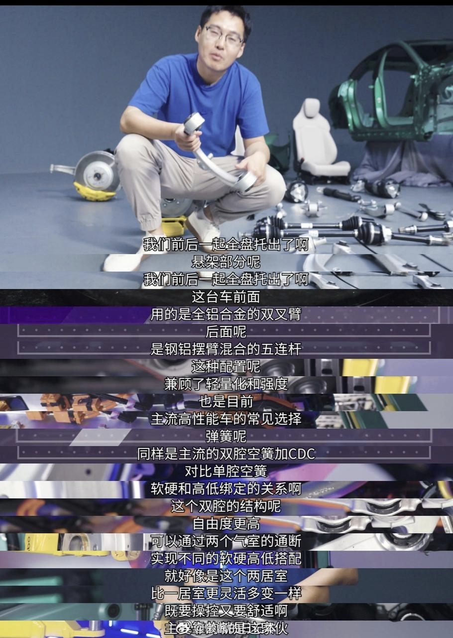 悬挂系统采用双腔空簧加CDC减震组合,相比单腔结构,可实现更多样化的软硬、高低调节,兼顾操控与舒适性需求。