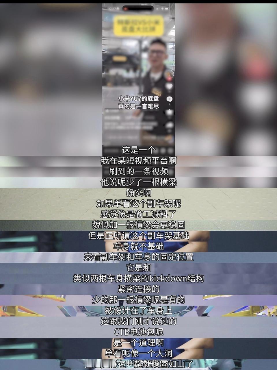 小米YU7全网首拆 易车原创节目发布小米YU7全网首拆视频,此次拆解聚焦车身用料、结构设计、三电防护、NVH表现等核心维度,对车型各项指标进行深度检测,呈现其关键配置细节。